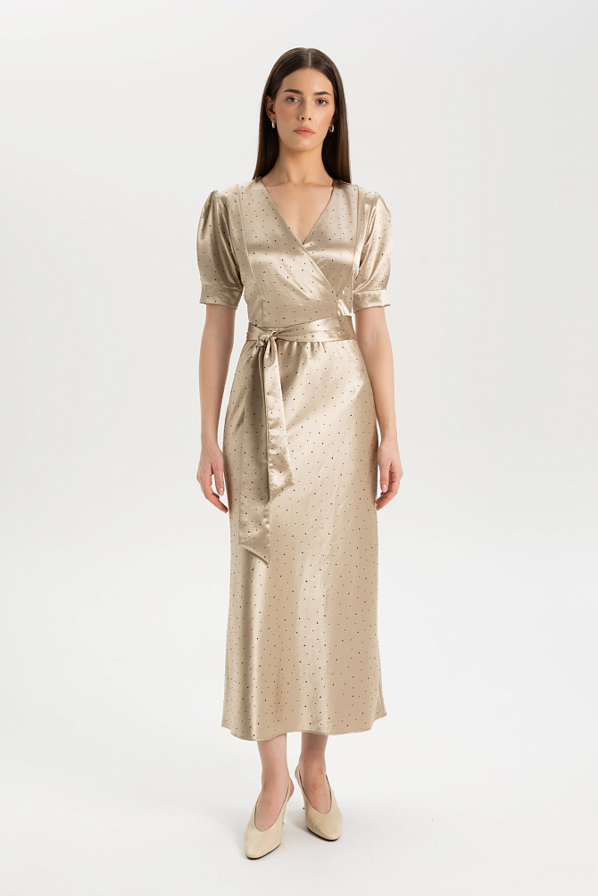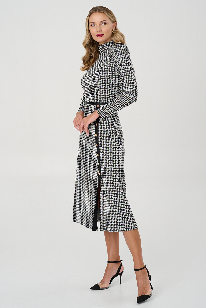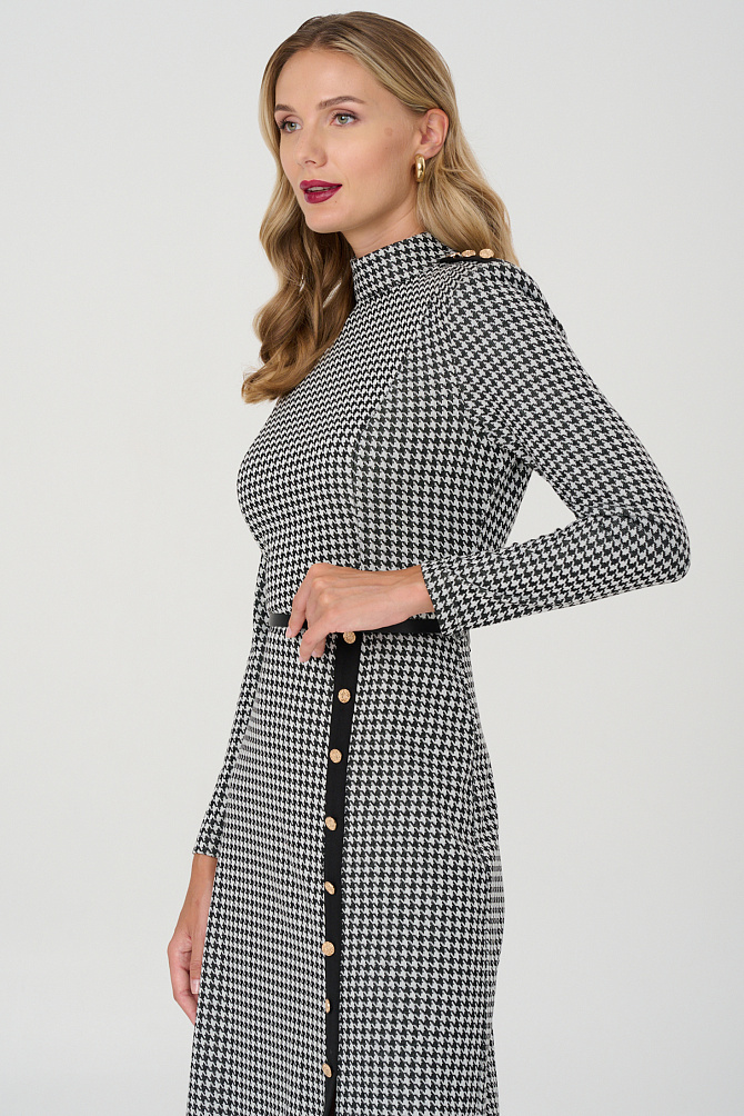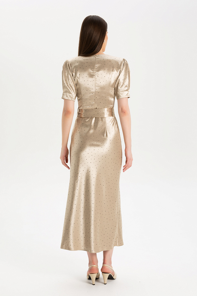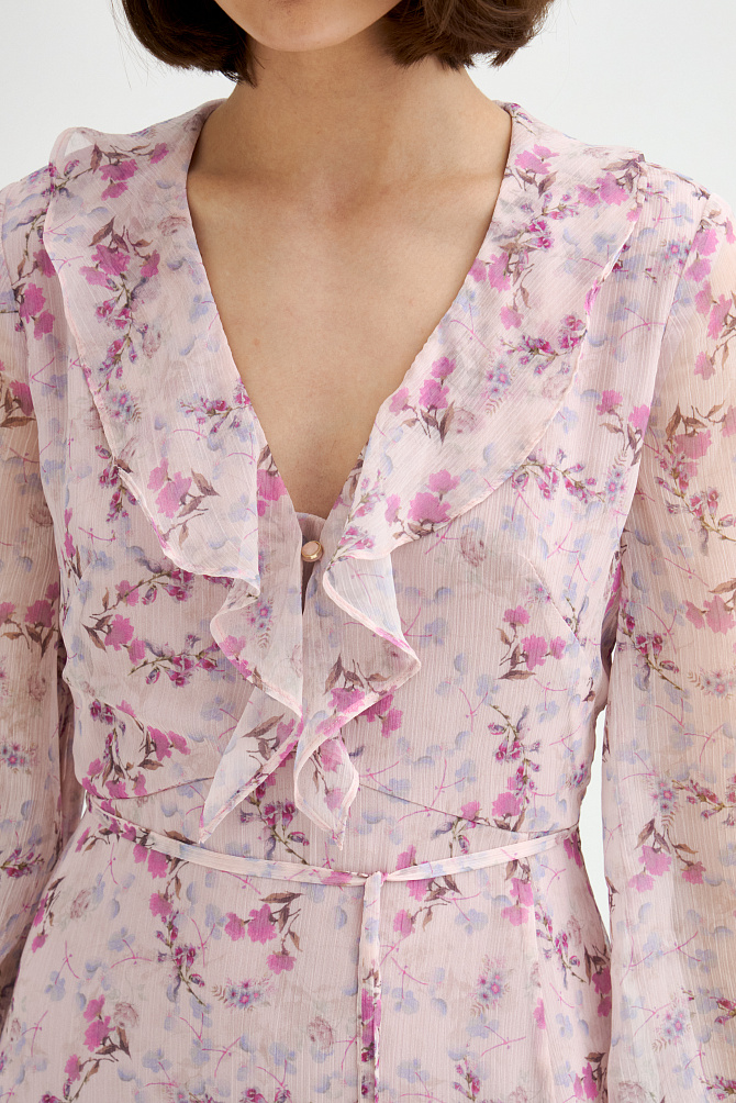 Платье из фактурного хлопкового кружева с пышной юбкой и отрезной талией, дополненной кожаным ремнем. Особенности модели — акцентный воротник-бант, пышные рукава с манжетами и металлические пуговицы с эмалью. Высококачественные материалы и фурнитура подчеркивают утонченность и элегантность изделия. В комплекте — атласная комбинация и кожаный ремень с золотой пряжкой. Идеальный универсальный вариант, который подойдет как для повседневного образа, так и для особых случаев.