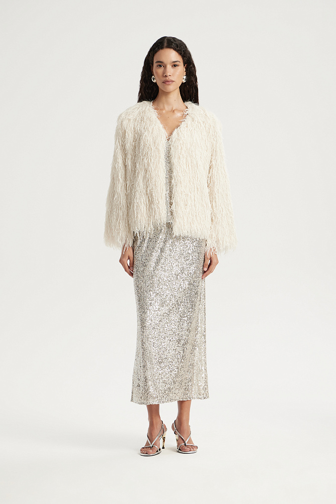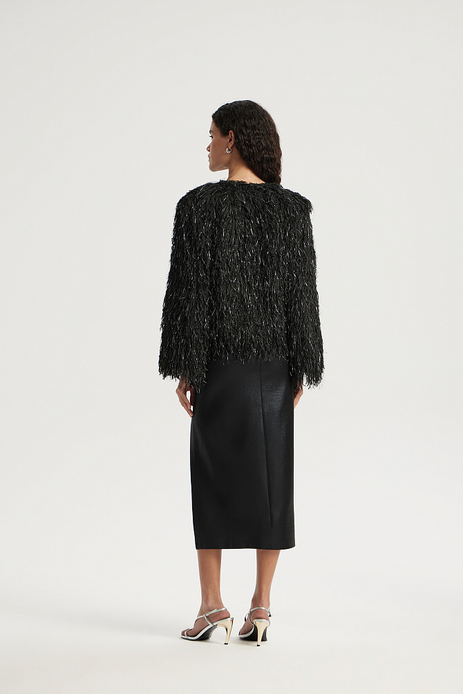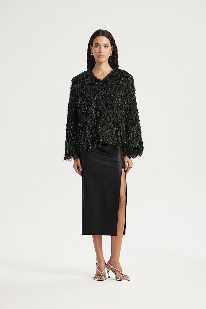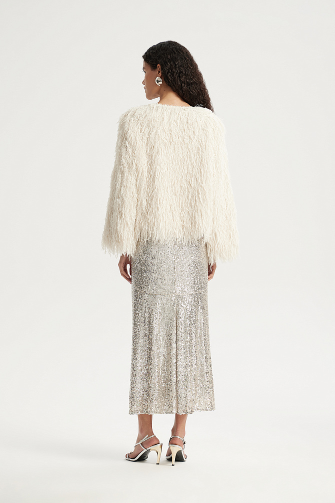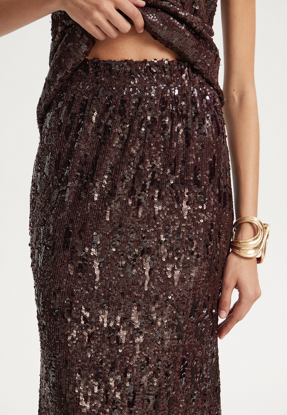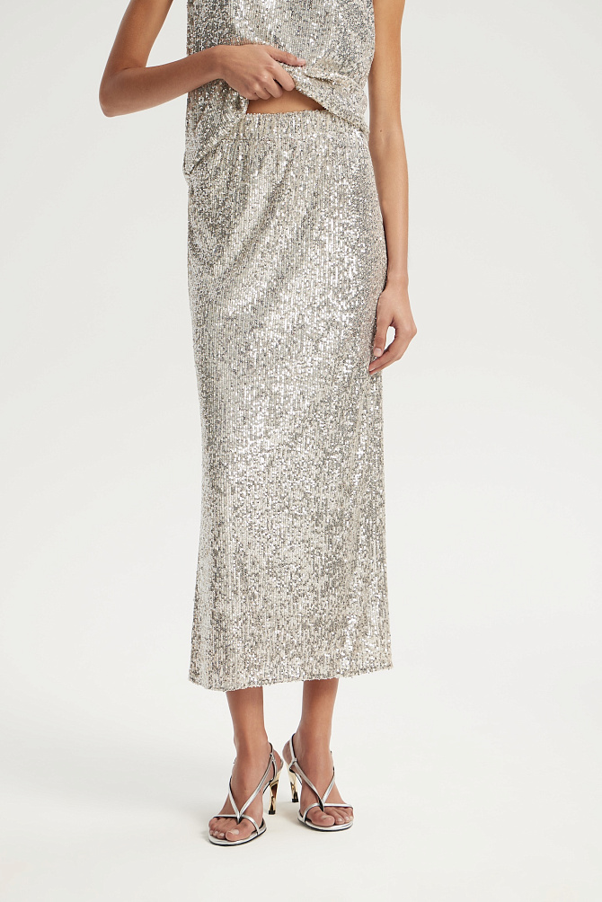 Элегантная юбка из мягкой эластичной ткани с мерцающими пайетками станет ярким акцентом в вашем гардеробе. Модель на удобной резинке по талии можно носить как самостоятельный элемент или в комплекте с топом из той же ткани. Полностью на подкладке из эластичной сетки с защитой внутренних срезов для максимального удобства в течение всего дня.