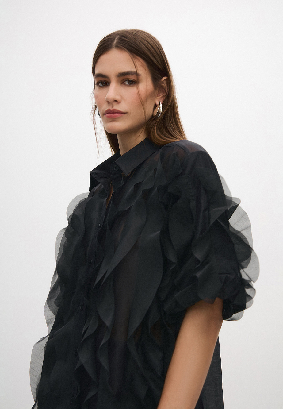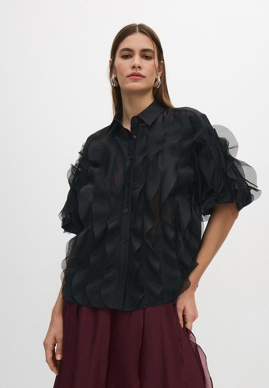 Основной материал: Материал 1:90% вискоза, 10% полиэстер. Материал 2: 100% полиэстер Подкладочный материал: без подклада.