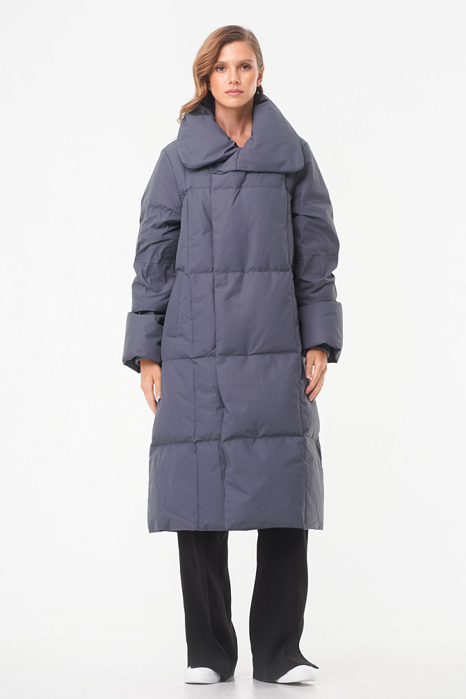 Серый удлиненный пуховик
