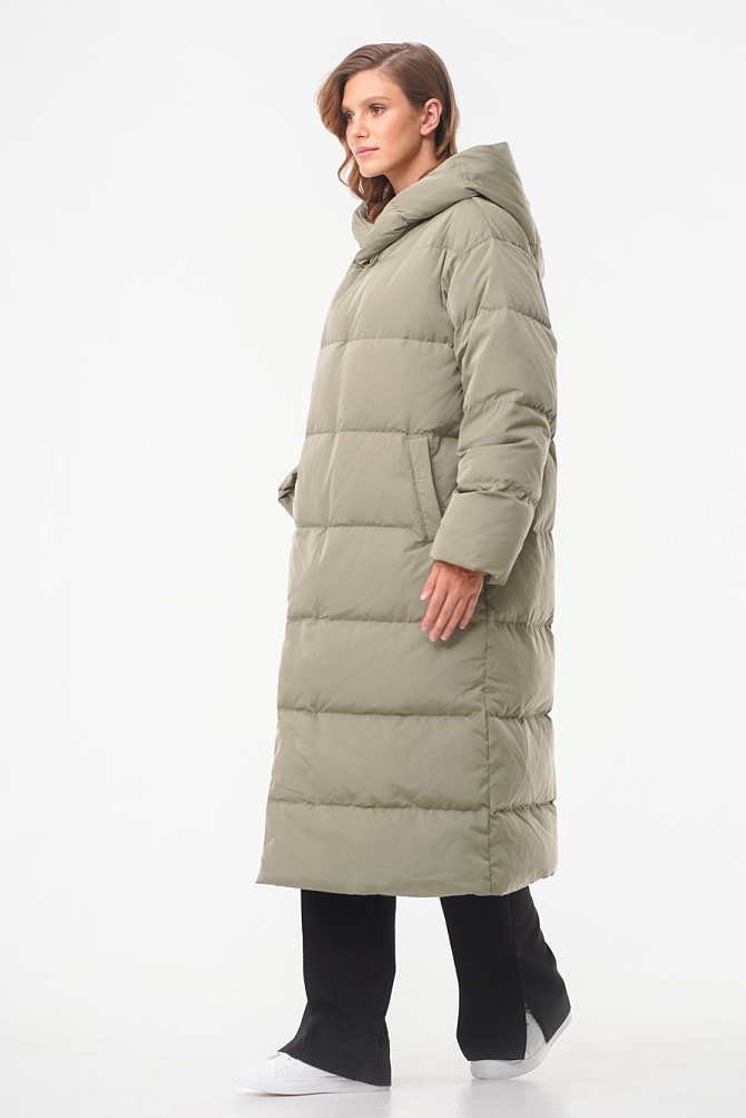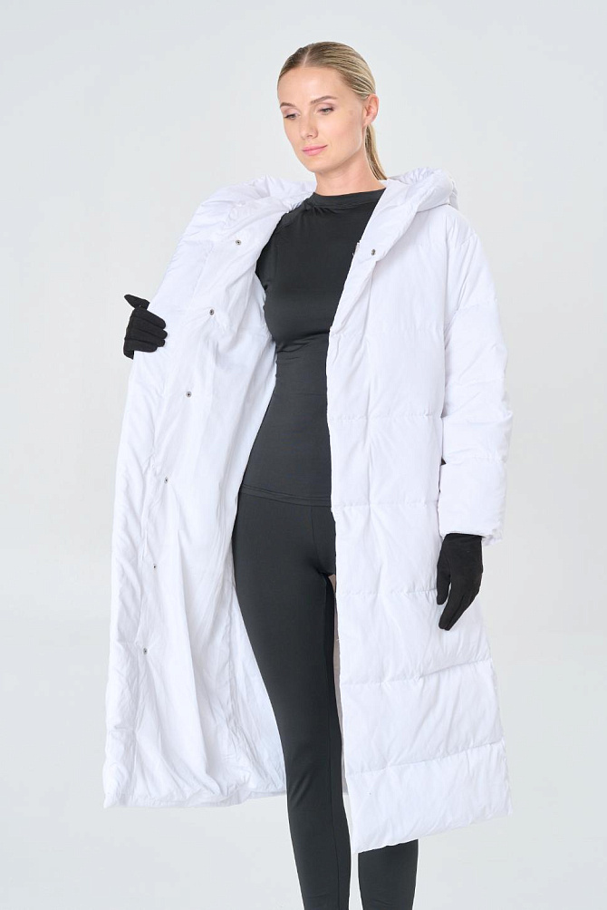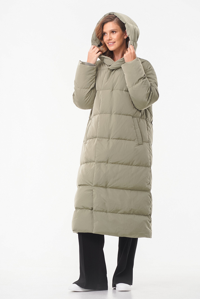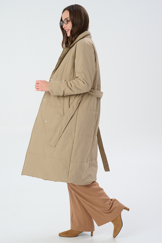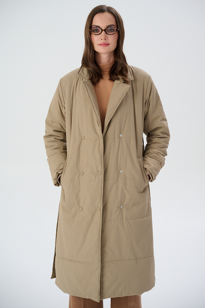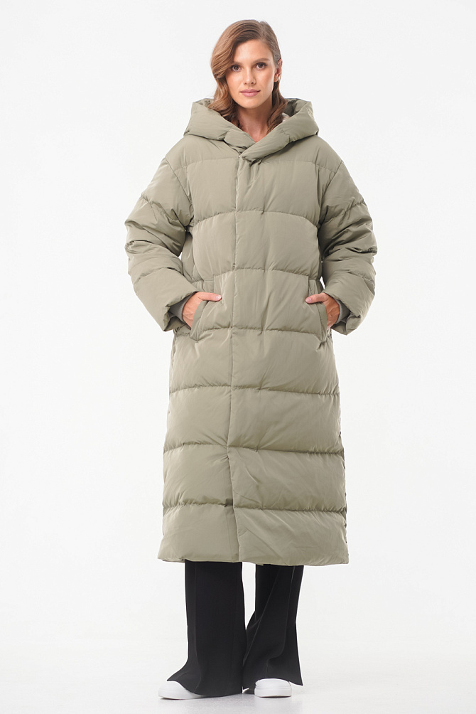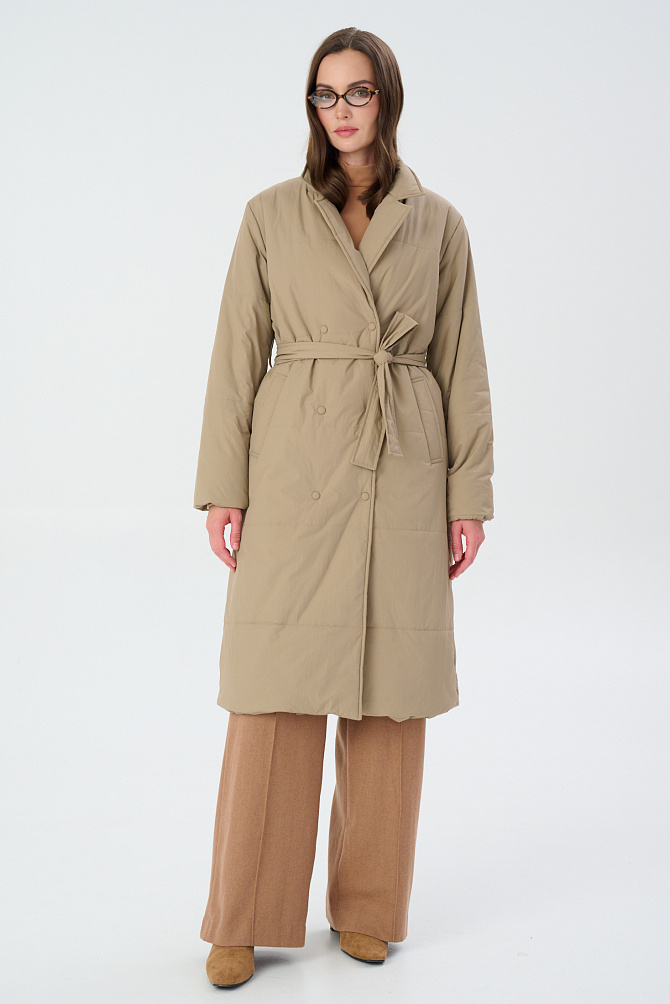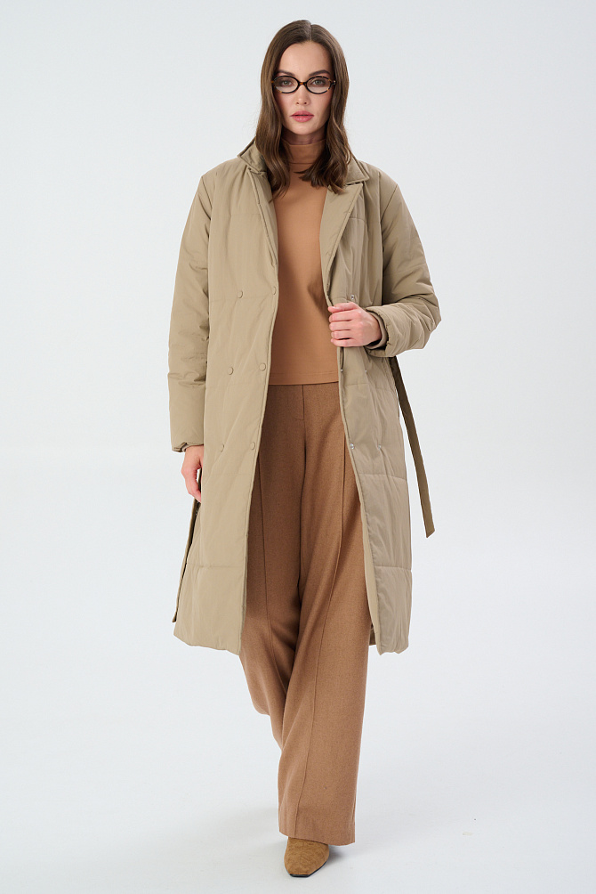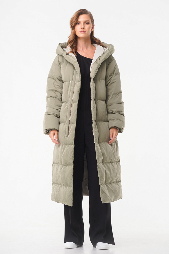 Удлиненный пуховик с поясом