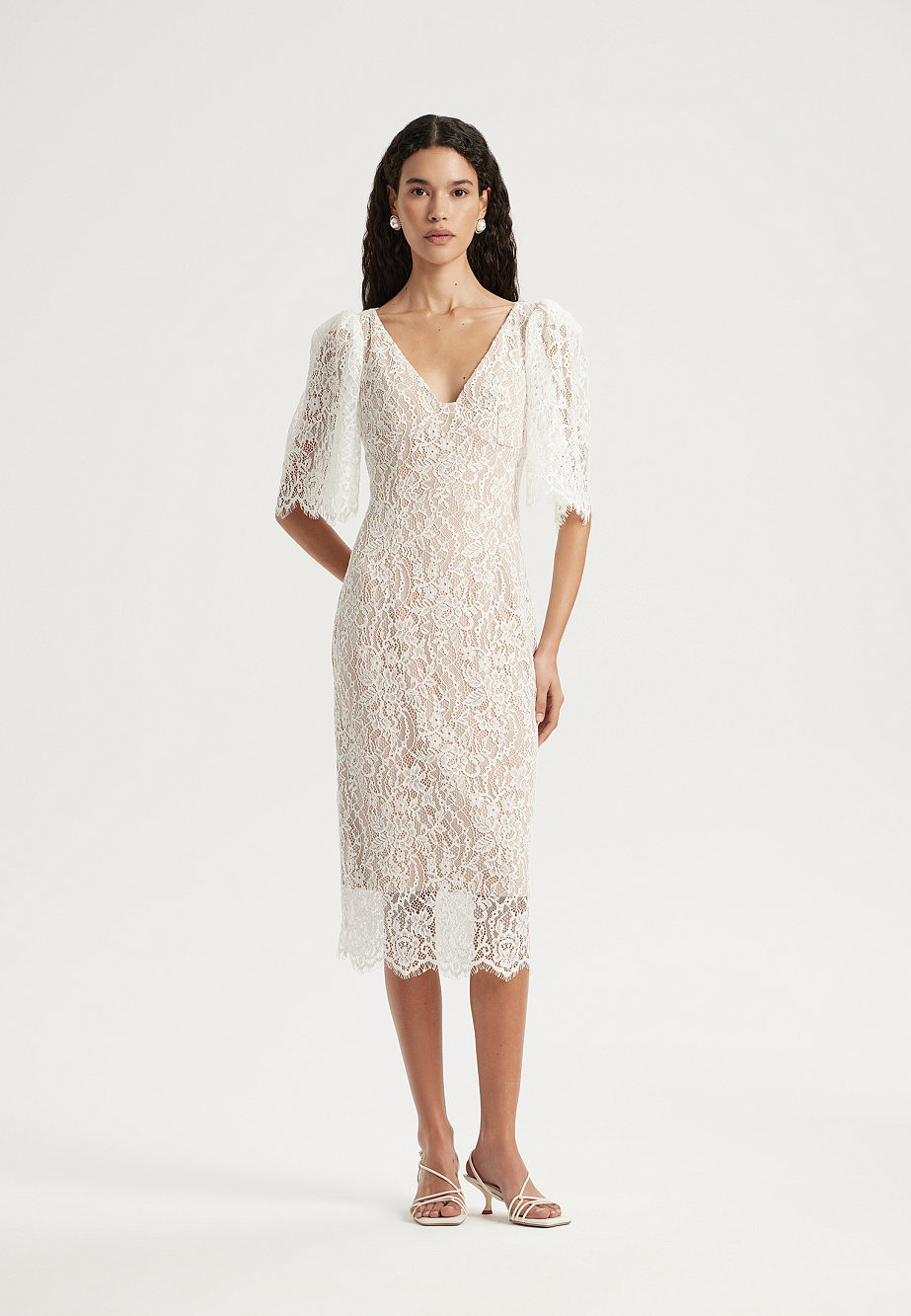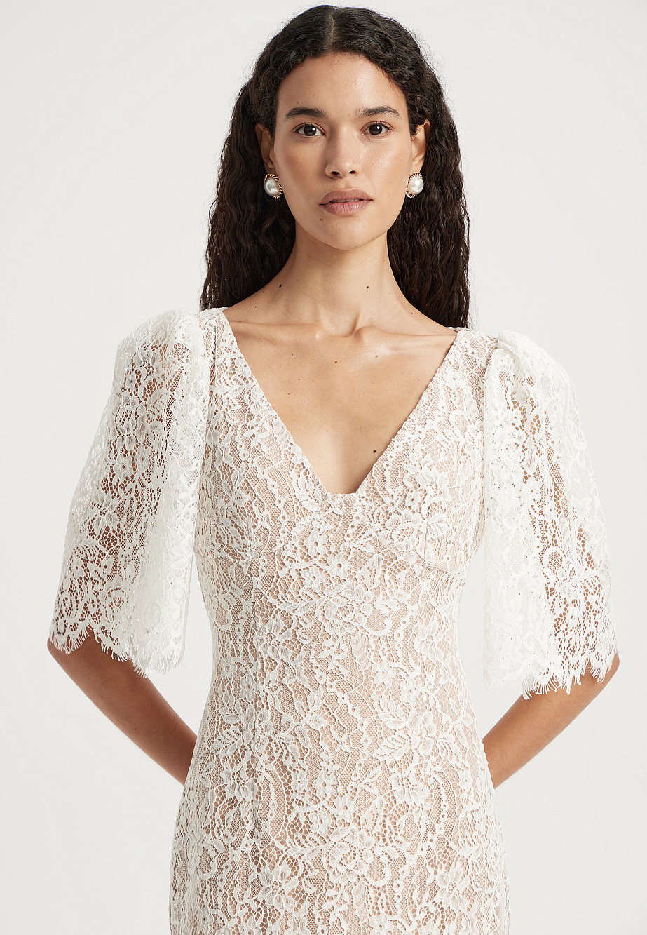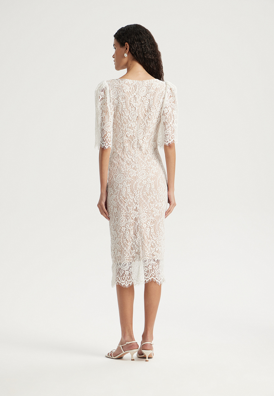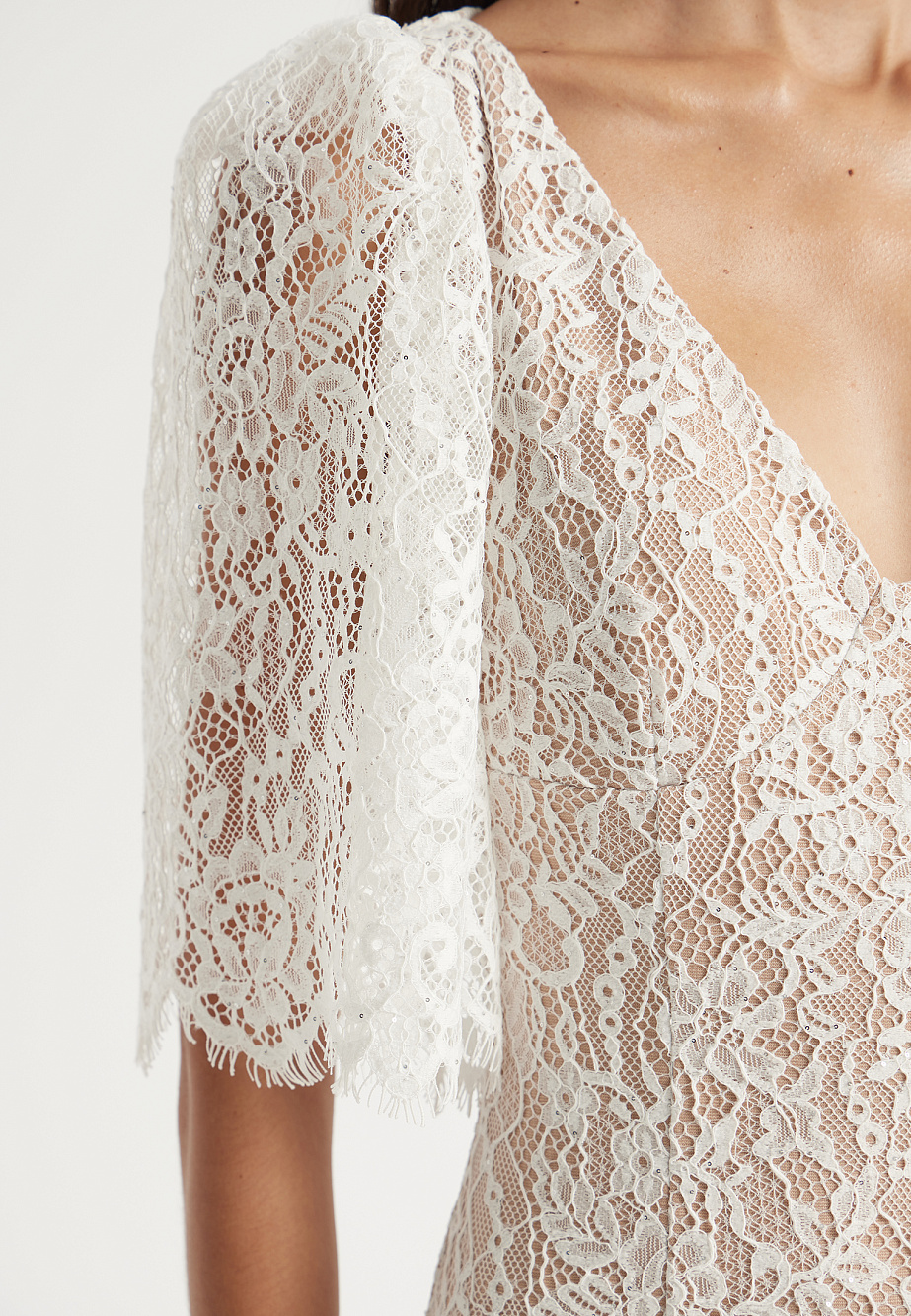 Эффектное кружевное платье с мерцающими мелкими пайетками покорит с первого взгляда. Модель выглядит загадочно, торжественно и очень женственно.Роскошная ткань с фестонами и утонченным ажурным рисунком прекрасно просматривается благодаря вискозному трикотажному подкладу цвета nude. Приталенный крой и плотный подклад делает силуэт совершенным, а роскошные прозрачные рукава и V-образный вырез придают легкость и таинственность. В платье продуманы все технологические нюансы, чтобы создать такой идеальный и притягательный образ.