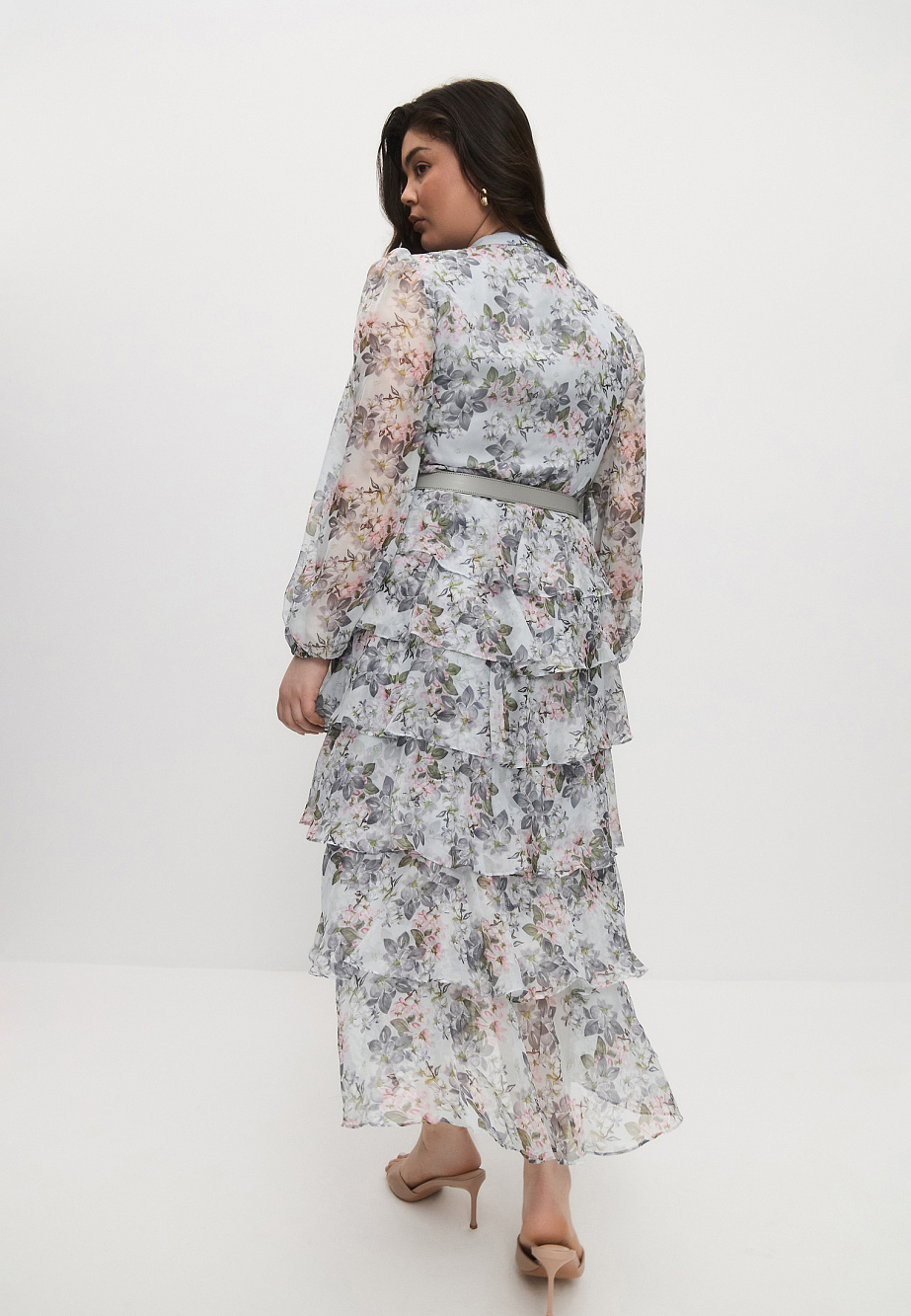 Платье из нежнейшего шифона с принтом , отрезное по талии, с роскошной ярусной юбкой. Лаконичный закрытый верх,воротник-стойка, рукав 3/4 на резинке по низу ,застежка спереди на пуговицы с перламутром. Талию подчеркивает ремень из натуральной кожи. Подкладка из вискозы создает освежающий, прохладный и комфортный эффект. Длина платья от талии 92см.