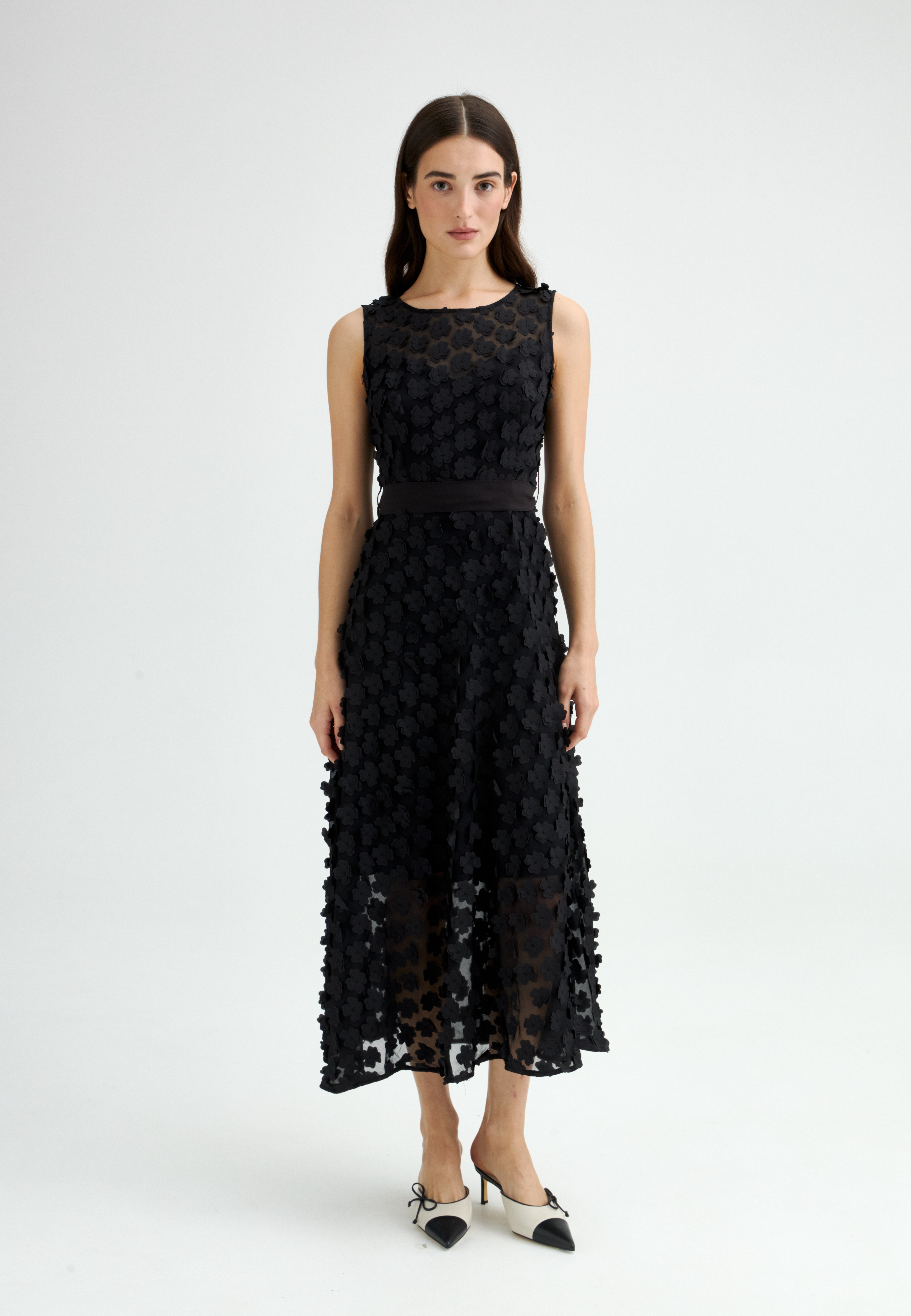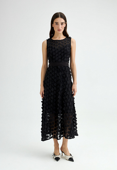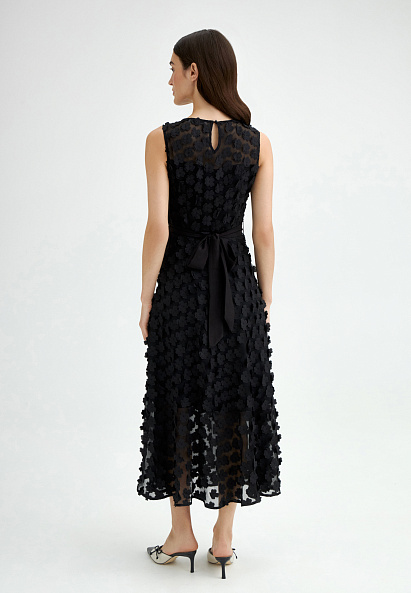 Платье в лаконичном силуэте мидакси из ткани с эффектом 3D сочетает высокое качество обработки, актуальные пропорции и продуманные детали. Круглый вырез горловины, юбка, скроенная по косой, и мягкий пояс из шифонового крепа придают модели элегантность и утонченность. Потайная молния сбоку и подкладка из вискозной ткани завершают образ, обеспечивая идеальную посадку.