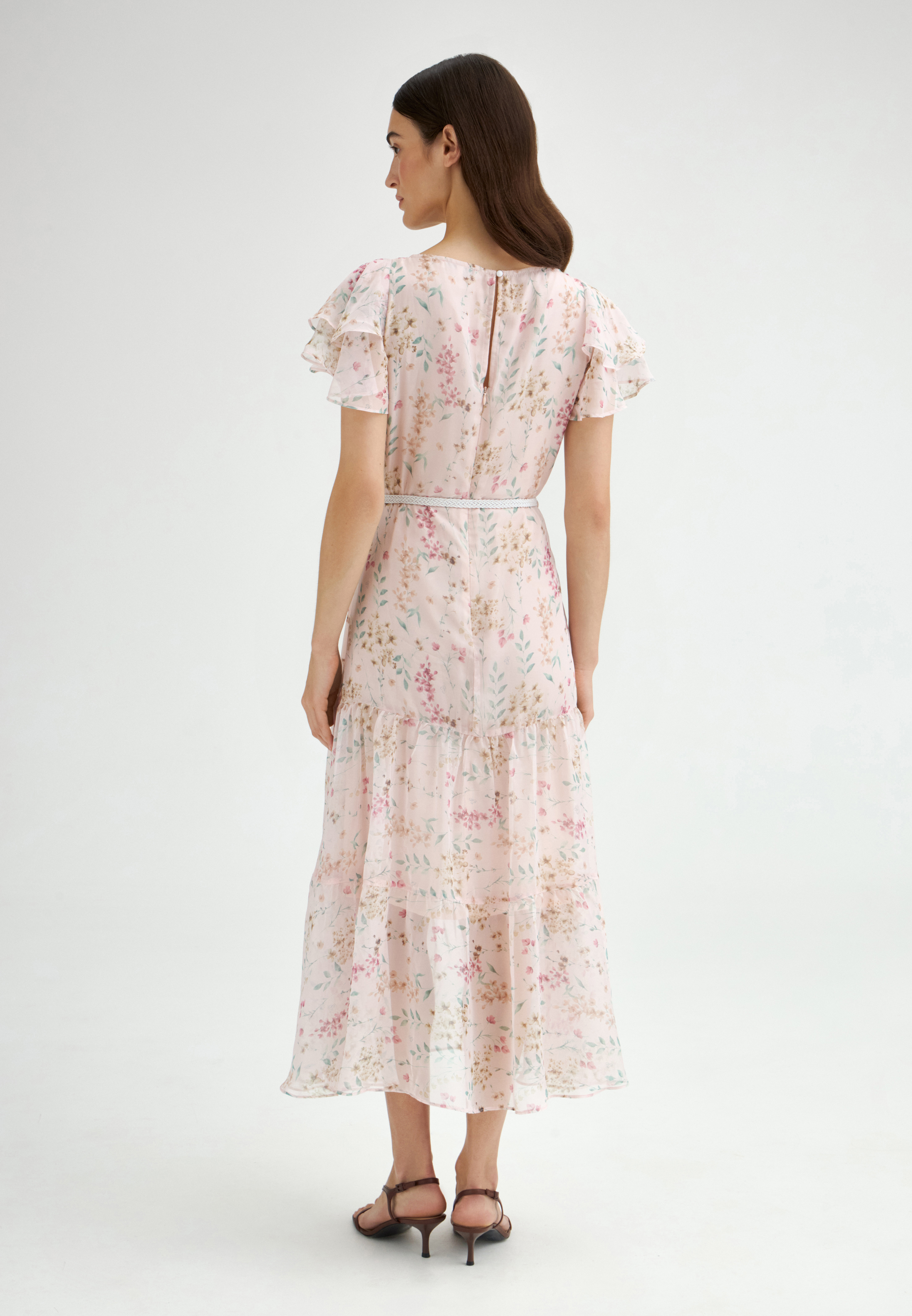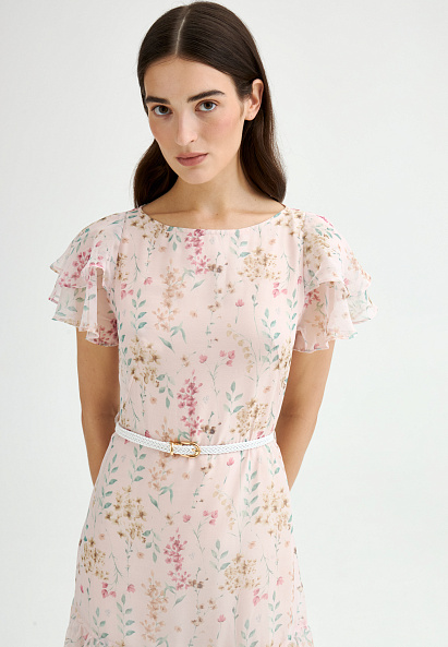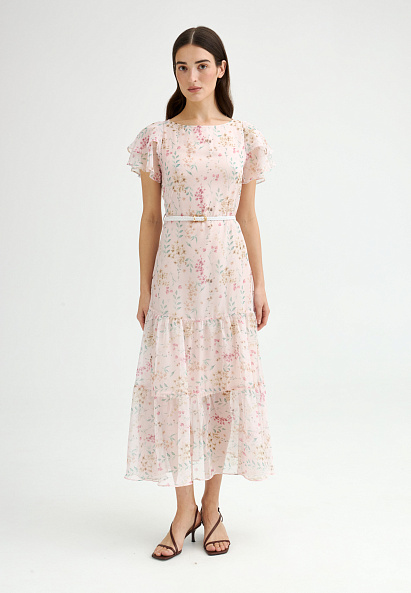Легкое платье из нежнейшего шифона свободного силуэта, дополненное плетеным ремнем, идеально подходит для жарких летних дней. Двойные рукава-крылышки и роскошная ярусная юбка придают модели романтическое настроение и подчеркивают женственность. Платье с подкладкой в виде комбинации из поливискозы обеспечивает комфорт в течение всего дня. Актуальные пропорции по длине и объему создают современный и в то же время гармоничный образ.