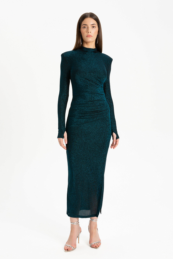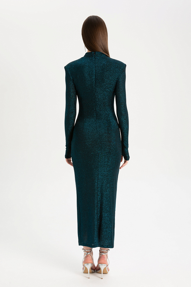 Элегантное коктейльное платье миди из ажурной сетки, декорировано мерцающей бахромой с пайетками. Модель с резинкой на талии и регулируемыми бретелями на подкладке подчеркивает фигуру, а разрез сзади добавляет образу легкости. Застежка на потайную молнию и декоративные пуговицы с навесными петлями обеспечивают идеальную посадку. В комплекте тонкий кожаный ремень для акцента на талии. Специальная обработка срезов делает швы мягкими, а изделие удобным для носки.