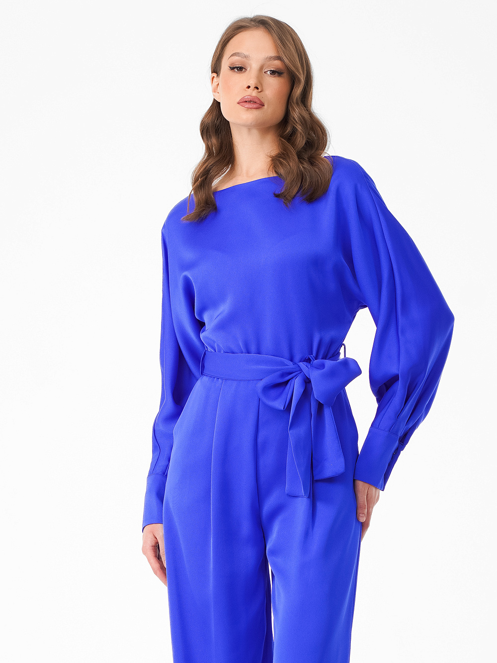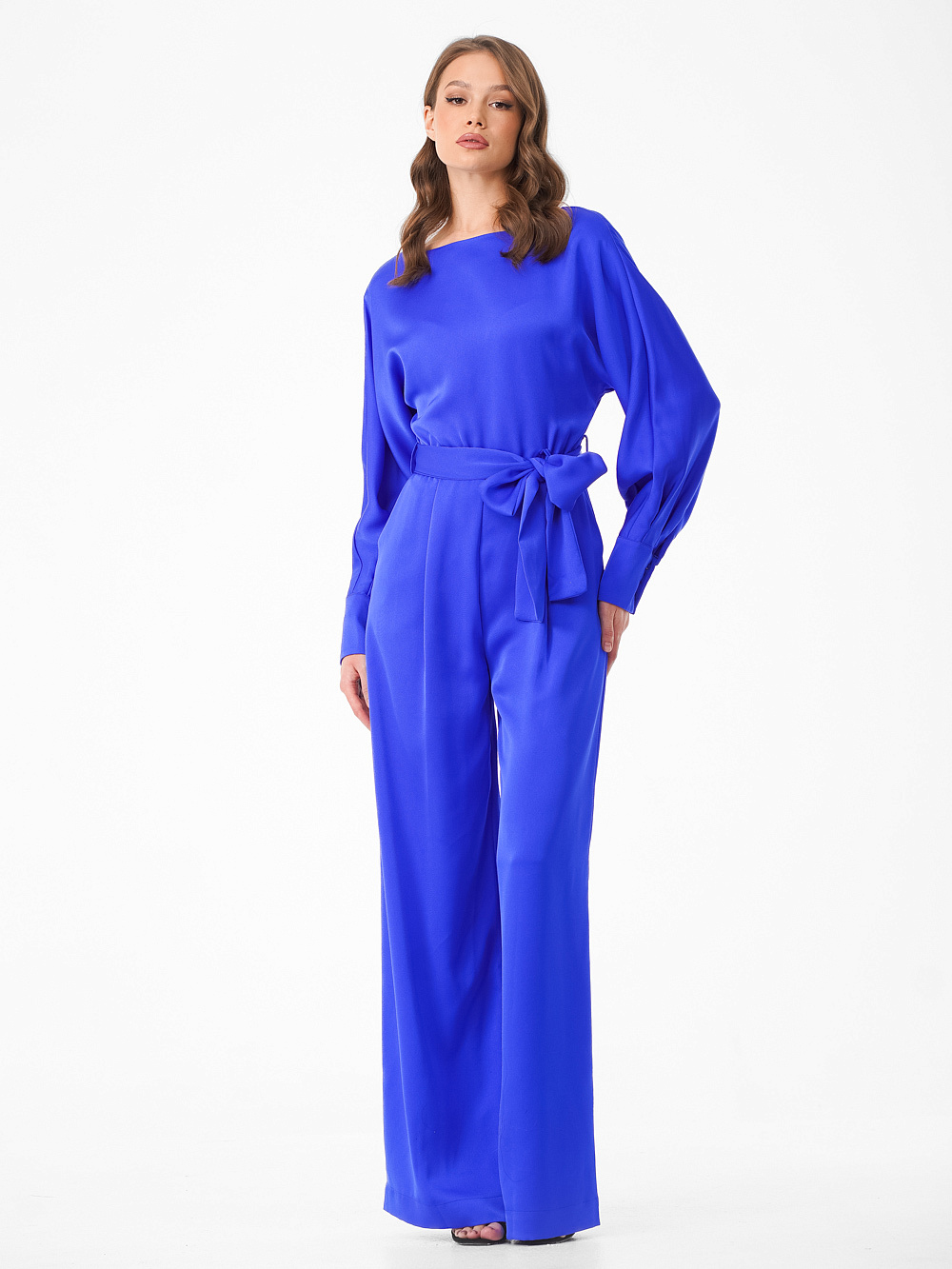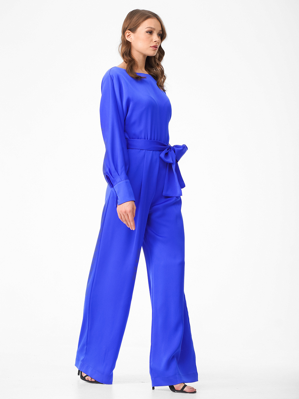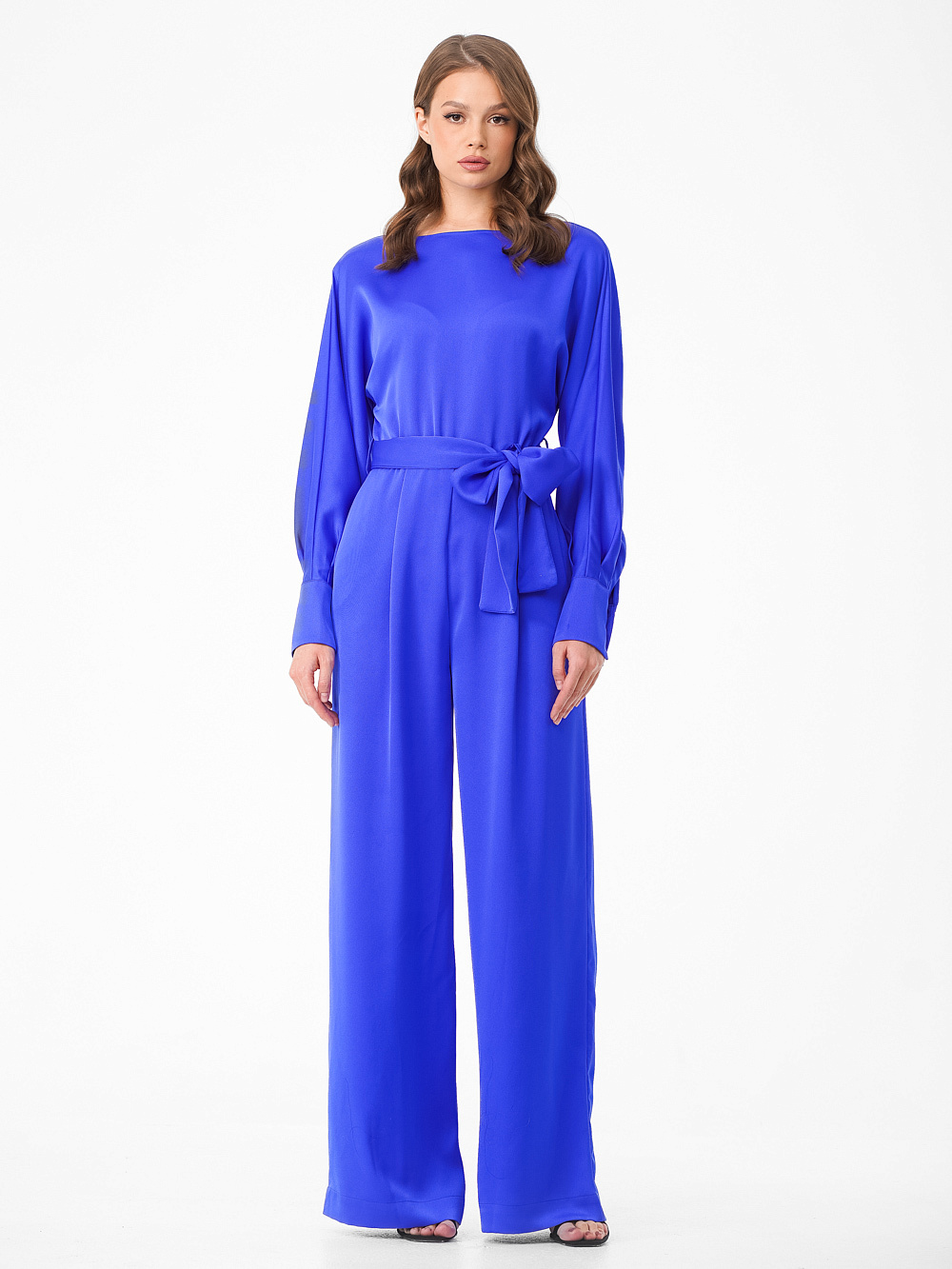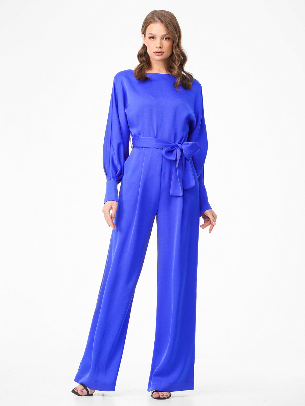 Яркий и незабываемый образ total look в двух актуальных оттенках фуксия и сапфир. Эта модель комбинезона с цельнокроеным рукавом и высоким манжетом,с глубоким вырезом по спинке, с карманами и широкими брюками легко надевается и выигрышно смотрится, делая силуэт выше и стройнее. Лаконичный крой уравновешен ярким цветом, а мягкие объемы сосредоточены там, где нужно. В этом комбинезоне смелой и модной может стать любая девушка, которая не боится цвета и хочет выглядеть современно. Модель выполнена из сатина с матовым блеском и приятным к телу подкладом из смесовой ткани с высоким содержанием вискозы.Широкий пояс мягко и комфортно акцентирует линию талии.
