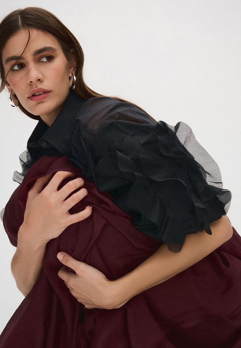 Основной материал: Материал 1:90% вискоза, 10% полиэстер. Материал 2: 100% полиэстер Подкладочный материал: без подклада.