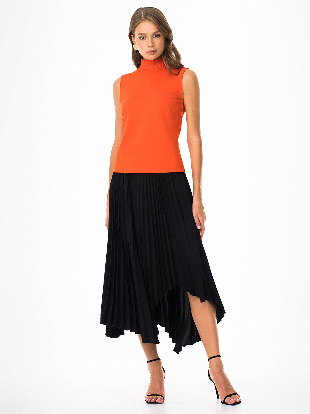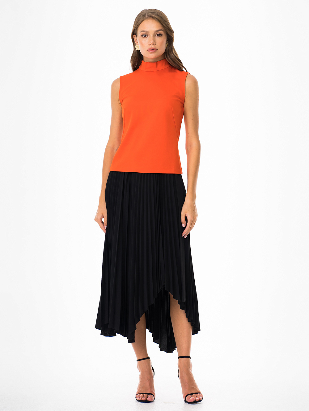 Топы из трикотажа с высоким содержанием вискозы, лаконичные и минималистичные , как дополнение к любому костюму. Модель представлена в двух оттенках - карамельно-бежевом и в ярком актуальном оттенке Red Orange.В модели продуманы правильные пропорции, длина и объем модели.Учтены особенности данного ассортимента в деталях обработки применительно для трикотажа. Эта простая и базовая модель, позволяет завершить образ, выглядеть всегда безупречно и элегантно.