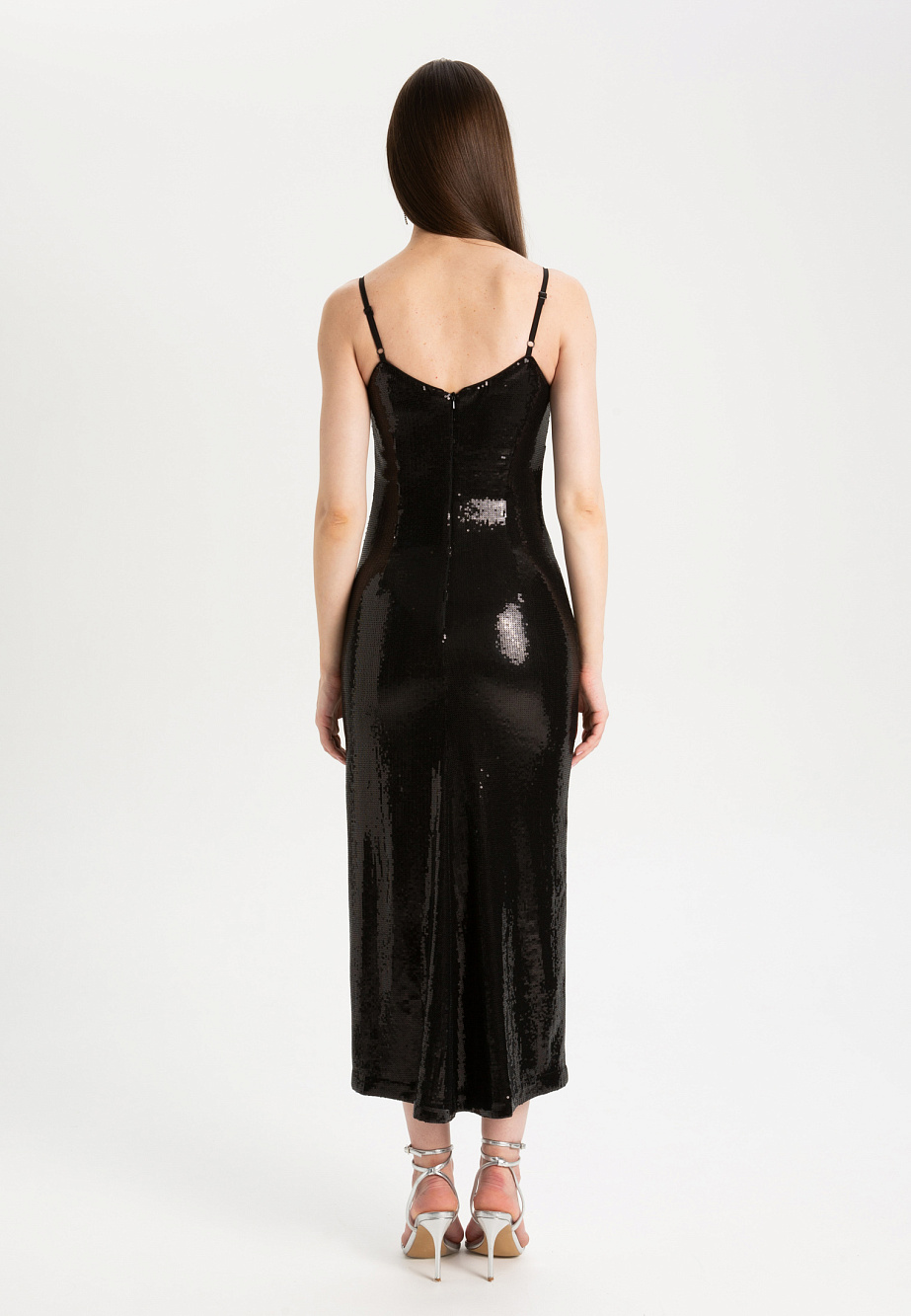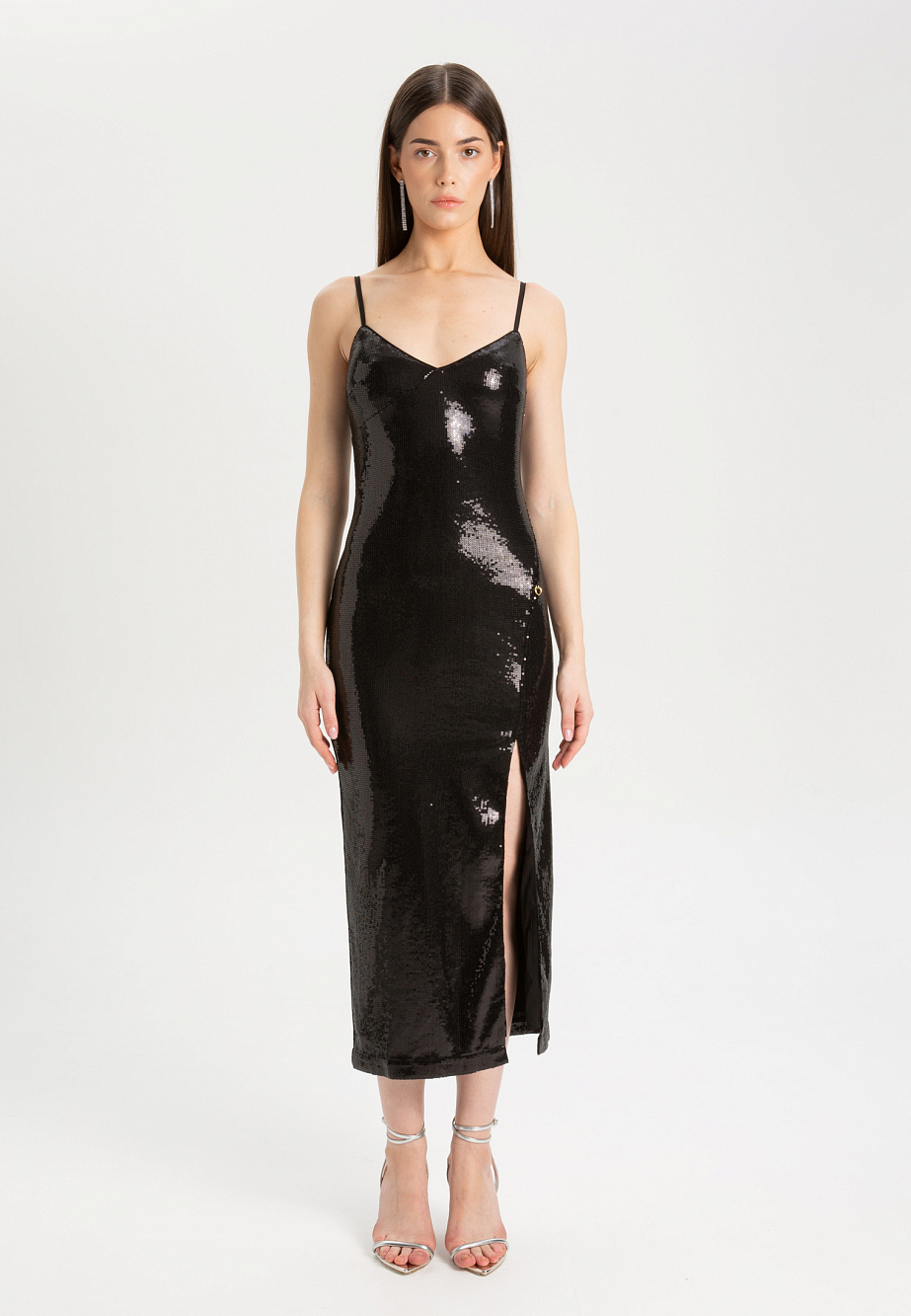 Коктейльное платье из ткани с гладкими пайетками и красивым лаковым блеском,на регулируемых бретелях, приталенного силуэта, с высоким разрезом. Модель создана для эффектных выходов и незабываемых впечатлениях. Чистота линий и безупречность конструкции подчеркивают совершенство женских форм и не теряют своей актуальности и универсальности в течении многих лет. Стоит обратить внимание на качественную и чистую технологическую обработку платья и тщательный подбор ткани, который играет ключевую роль в готовом образе. Платье можно дополнить прозрачной накидкой из коллекции текущего сезона.