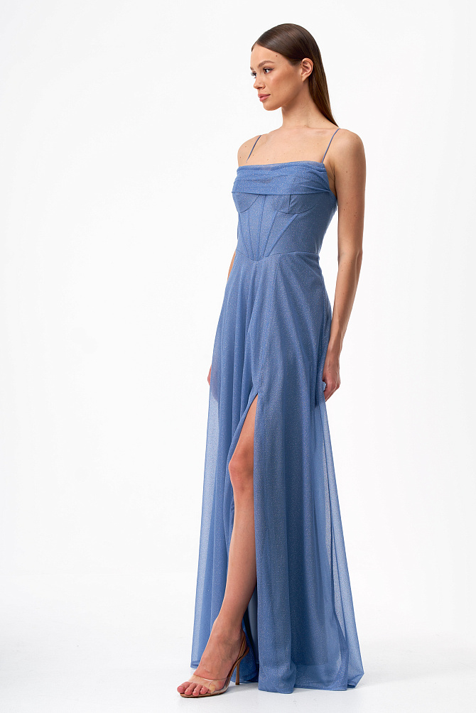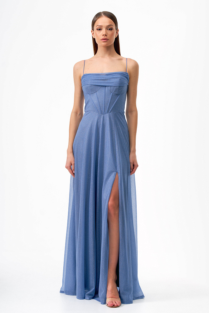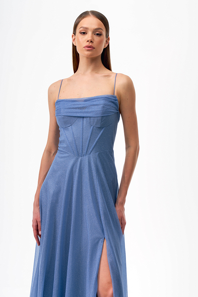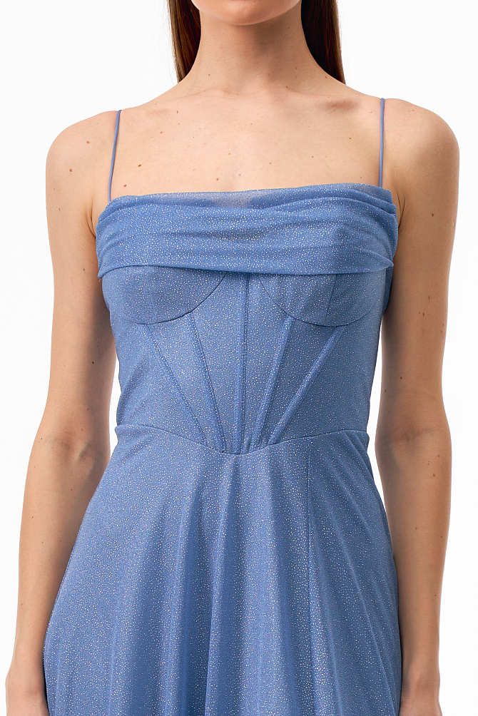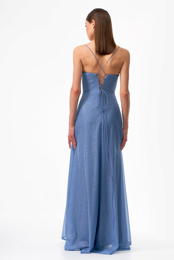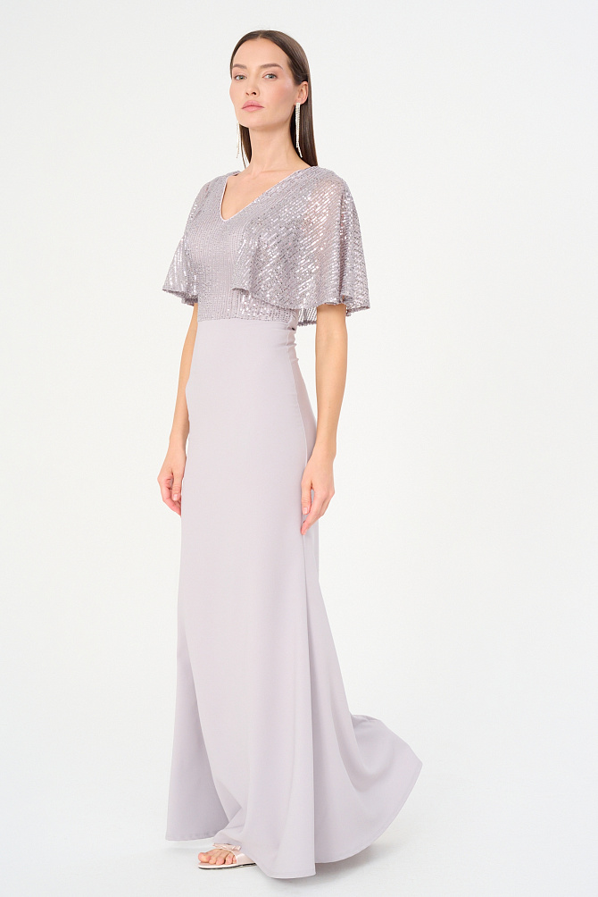 Элегантное платье в стиле диско длиной чуть выше колена и с акцентом на плечах. Сделано из бархата, расшитого пайетками. Модель с эффектными рукавами на защипах и плечевыми накладками создаёт выразительный силуэт. Кожаный ремешок подчеркивает талию. Тонкий сатиновый кант по горловине, эластичная подкладка и обработка внутренних срезов обеспечивают удобство в носке.