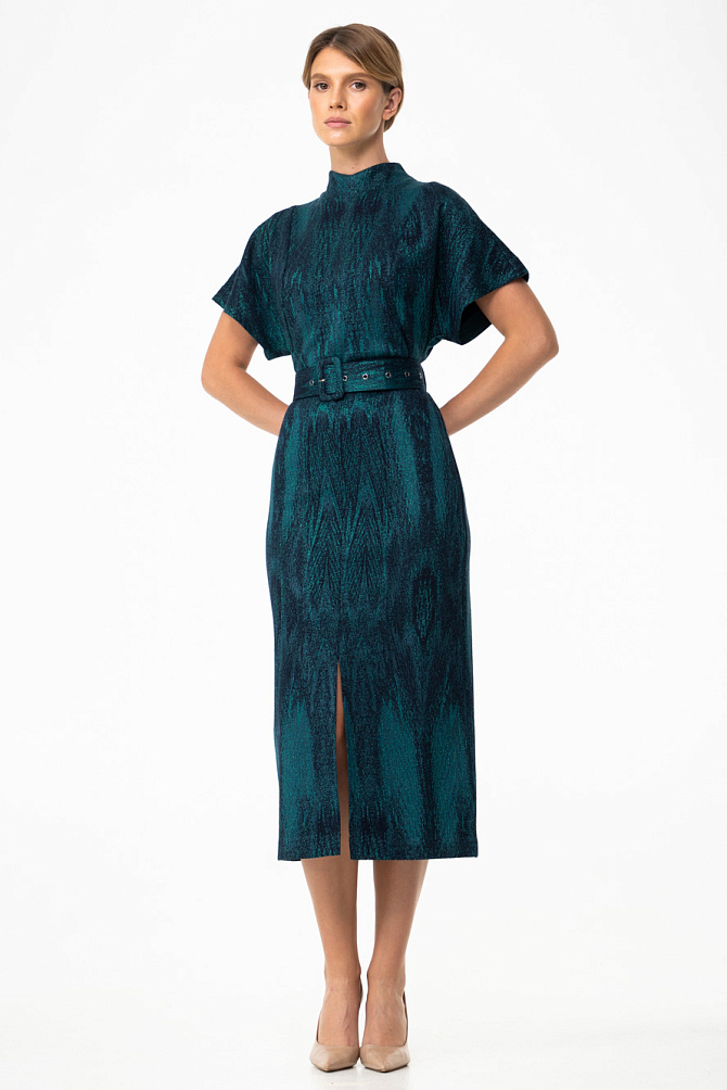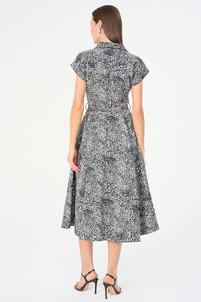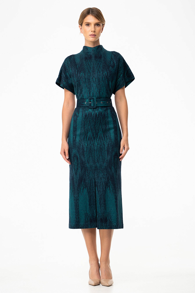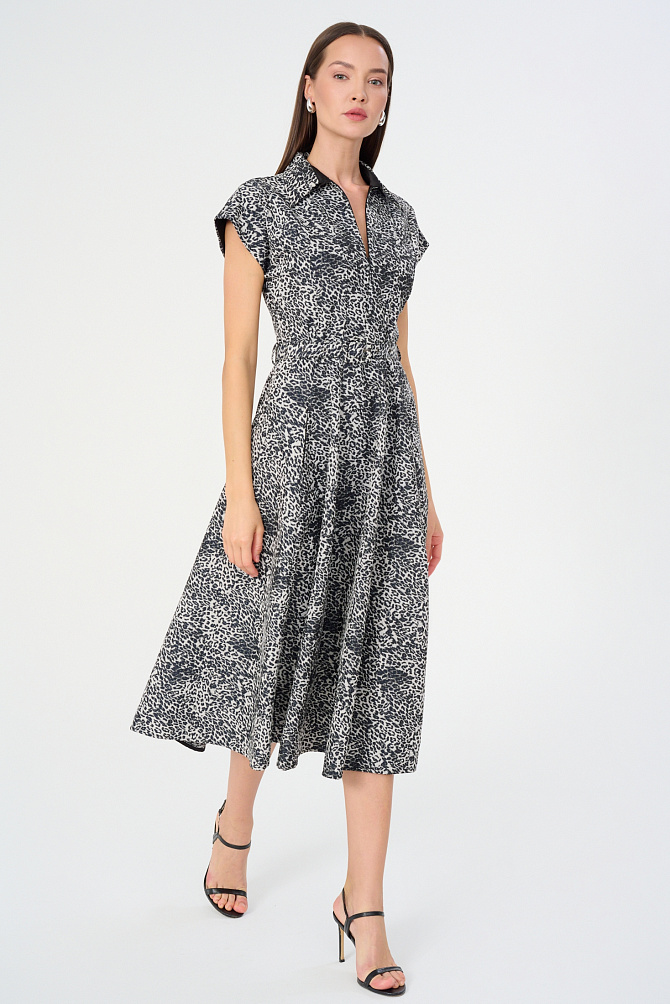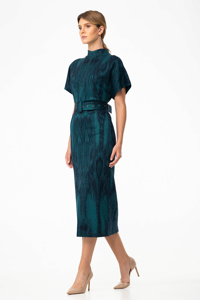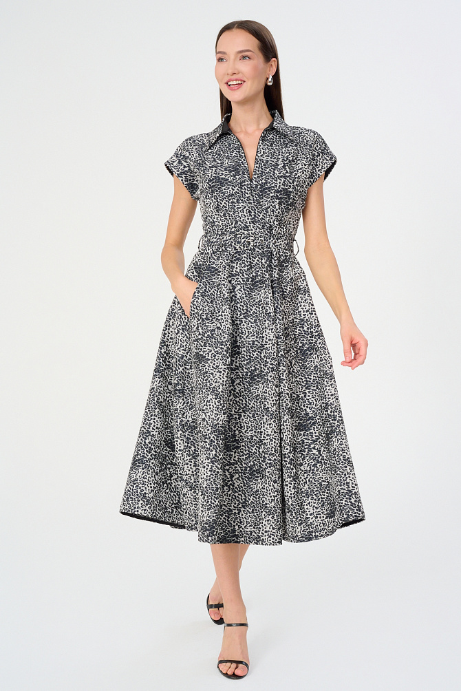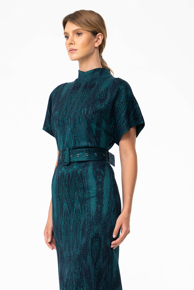 Лаконичное платье из хлопкового фактурного кружева с коротким рукавом и расклешенным книзу силуэтом. Рукава и низ платья заканчиваются изящными фестонами кружева. Фигурный подрез по низу платья позволяет добиться равномерного и красивого расклешения в мягкие изящные фалды. Платье с трикотажной подкладкой из района.