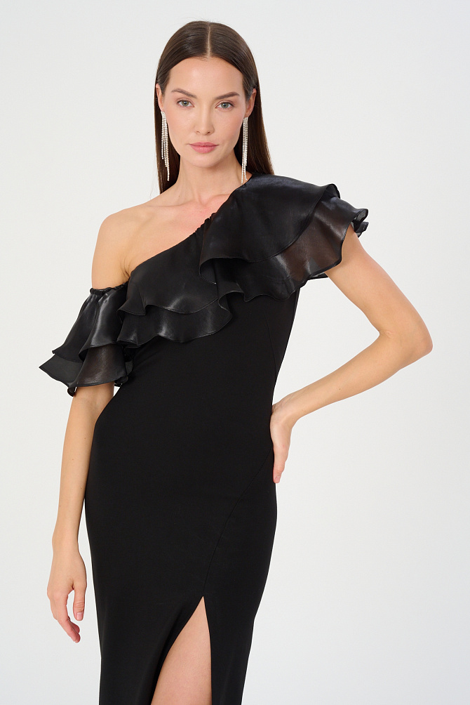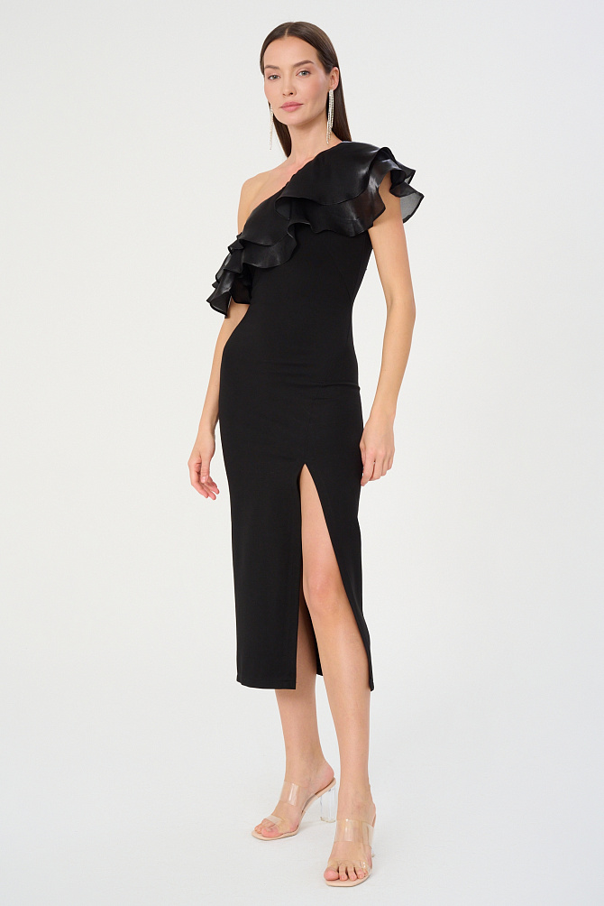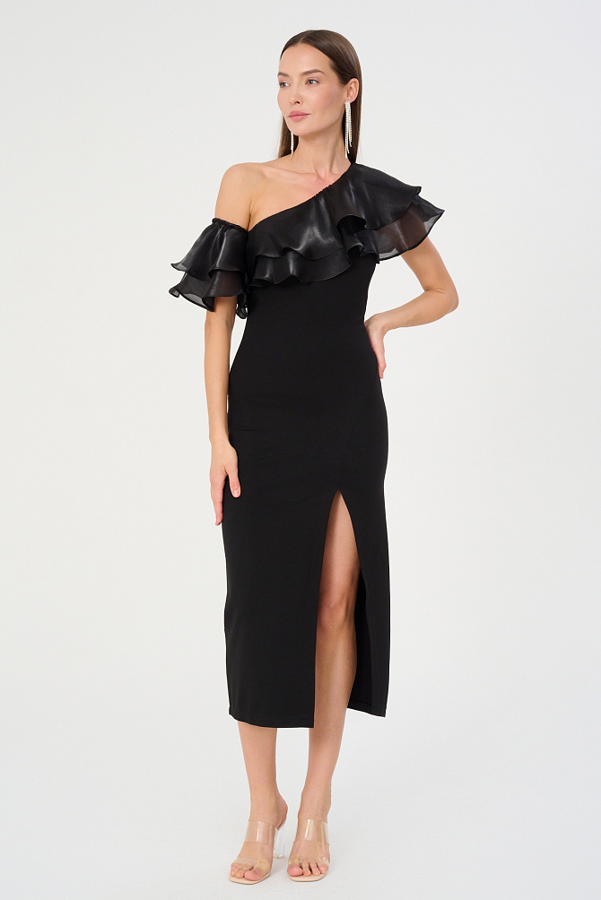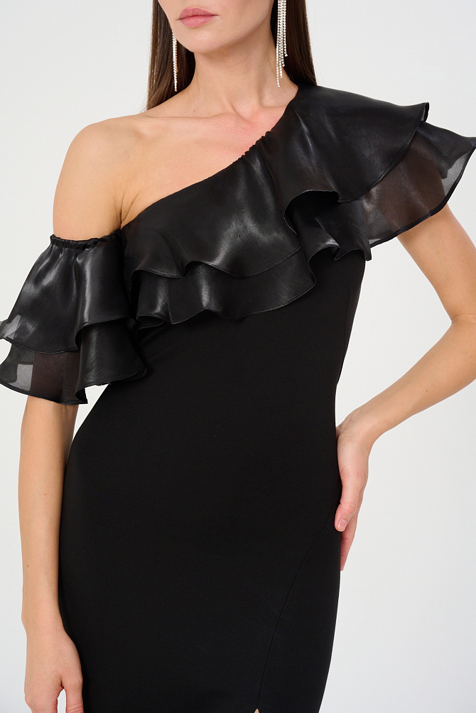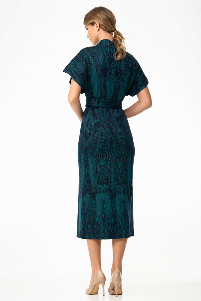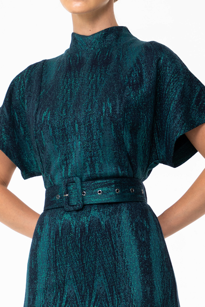 Лаконичное платье из хлопкового фактурного кружева с коротким рукавом и расклешенным книзу силуэтом. Рукава и низ платья заканчиваются изящными фестонами кружева. Фигурный подрез по низу платья позволяет добиться равномерного и красивого расклешения в мягкие изящные фалды. Платье с трикотажной подкладкой из района.