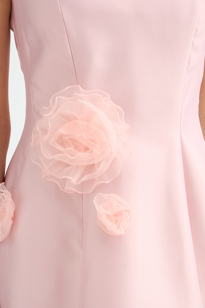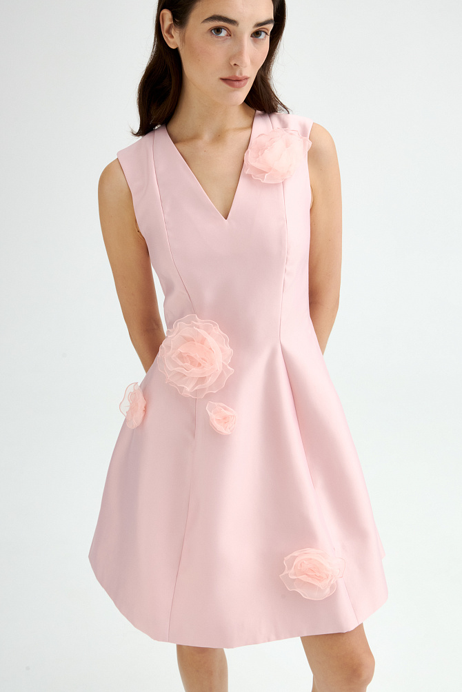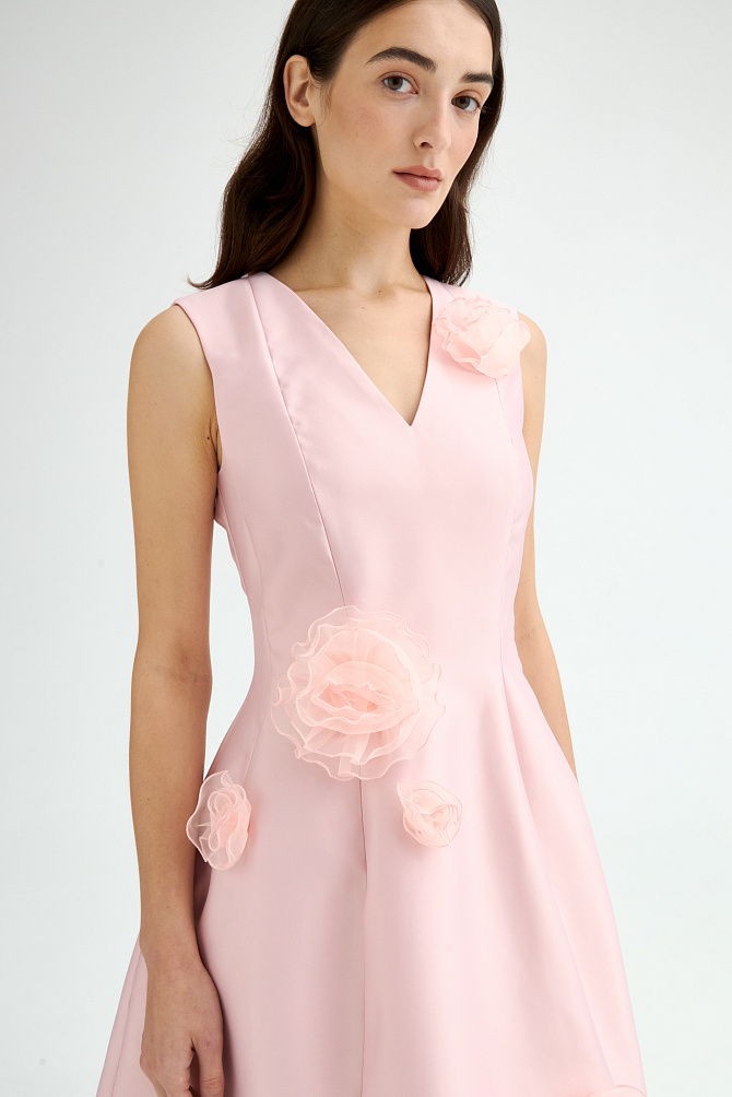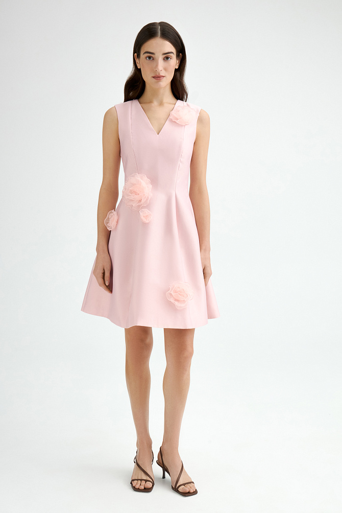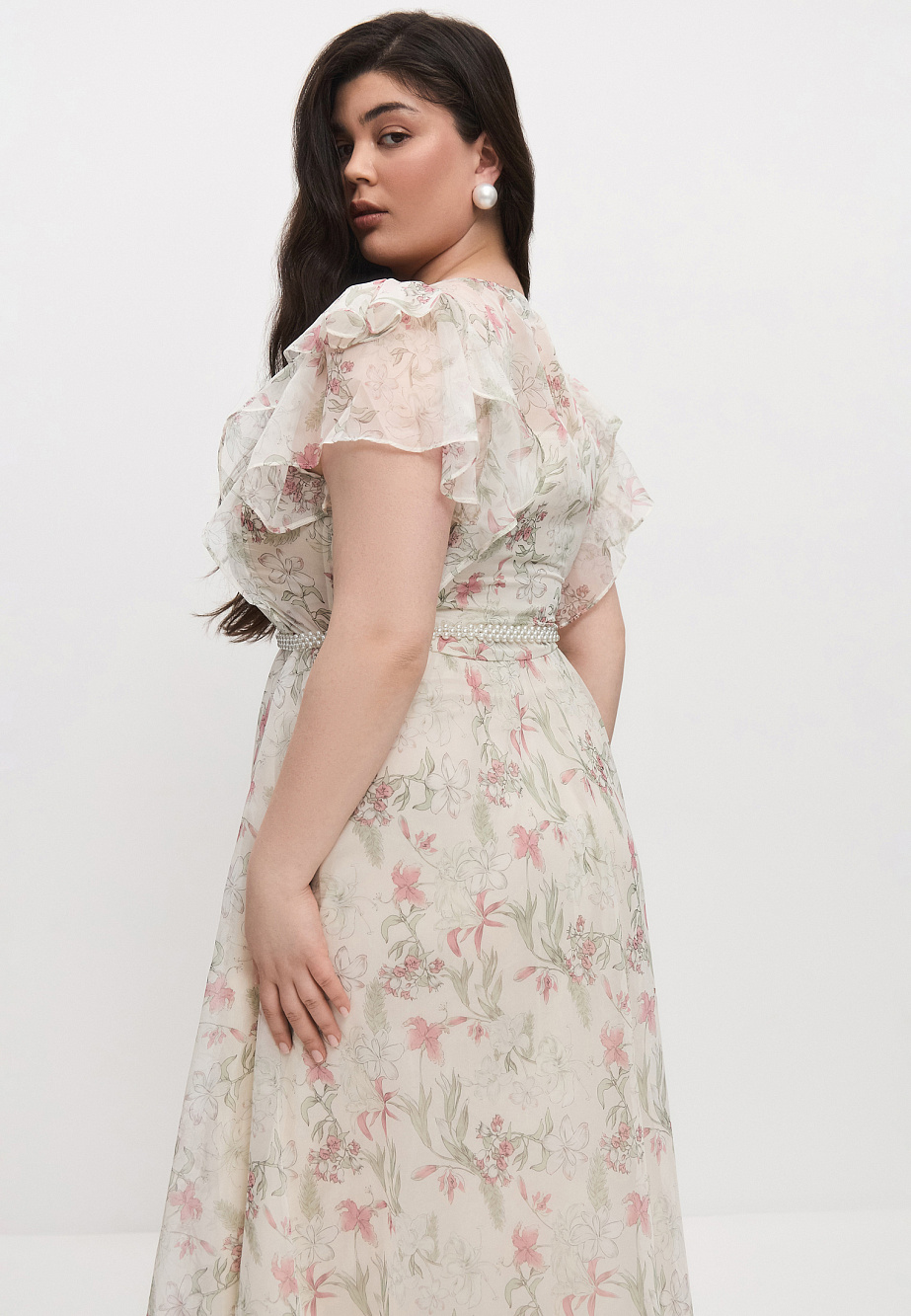 Романтичное платье в стиле Tea Dress выполнено из легкого шифона с нежным цветочным принтом на вискозной подкладке. Платье отрезное по талии с акцентным ремнем и застежкой на пуговицы под жемчуг. Рукава-крылышки, воланы в рельефах и расклешенная юбка с деликатной сборкой на талии. Длина от талии 88см. Потайная молния в боковом шве.