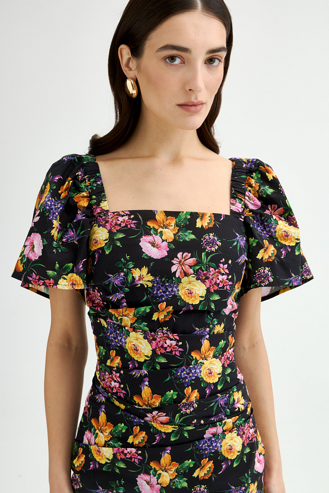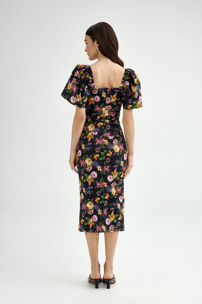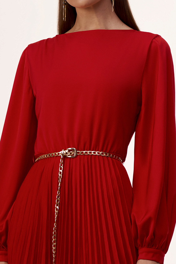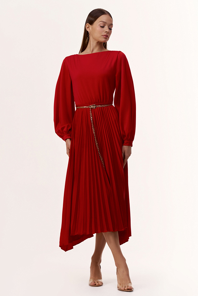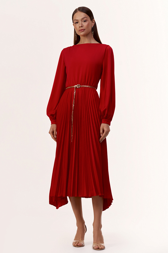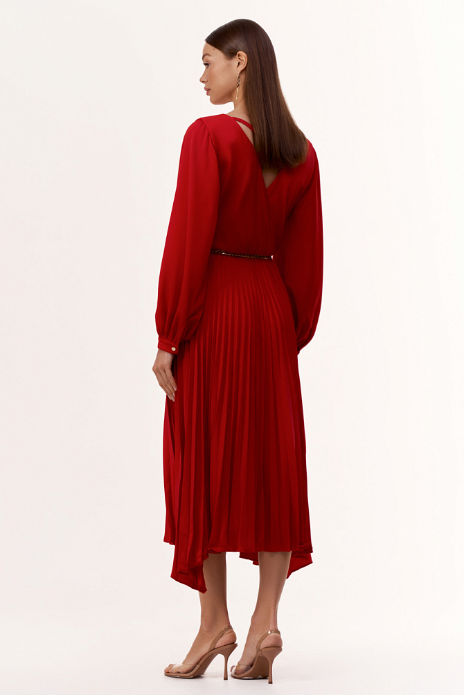 Элегантное вечернее платье-макси из ажурной сетки, богато украшенной вышивкой пайетками. Модель с V-образным вырезом горловины и длинными расклешенными рукавами с акцентом на плечи благодаря мягким накладкам. Юбка платья мягко расклешена к низу, создавая динамичный силуэт. Для удобства в носке все внутренние срезы обработаны, горловина дополнена мягким кантом, а потайная молния на спинке обеспечивает идеальную посадку. Платье на подкладке.