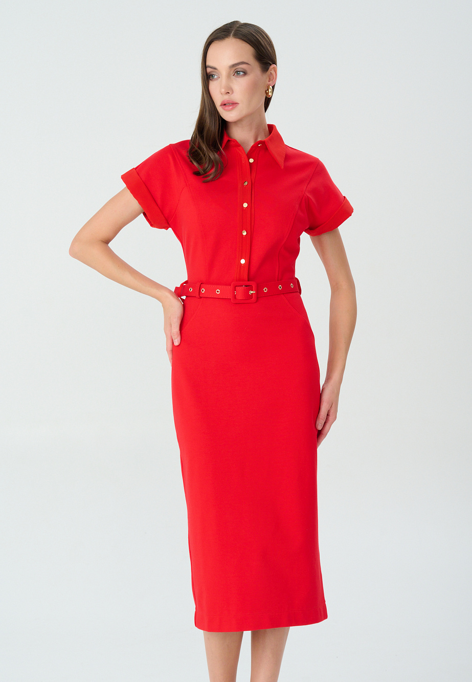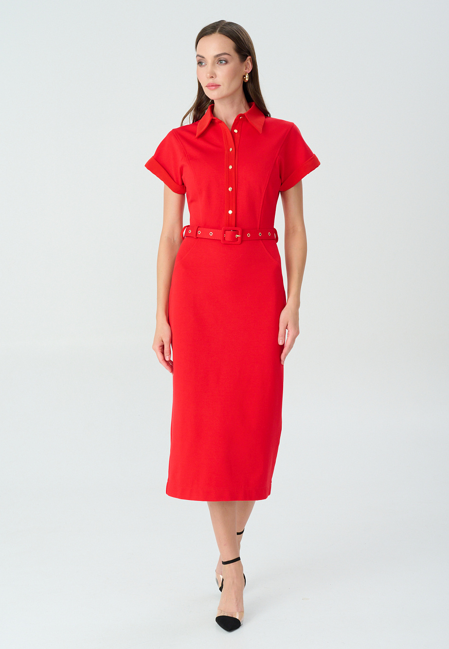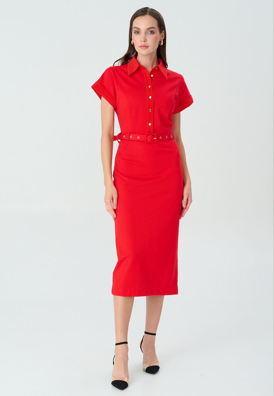 Платье-футляр из плотного трикотажа с высоким содержанием района комбинированное с отделкой деталей из сатина и фурнитурой под металл. Модель представлена в 2-ух цветах-в актуальном оттенке красного Aurora red, который заполнил модные подиумы и прекрасно смотрится в этом строгом силуэте, а также в синем базовом цвете. Сатиновые элементы - планка , воротник и манжеты смягчают строгий классический образ и создают дополнительный эффект разных фактур , что всегда выглядит интересно и благородно. Стоит обратить внимание на комфортный спущенный рукав, изящные рельефные линии и выверенные пропорции. Платье идеально подойдет для деловых встреч,конференций,походов на выставку и др.культурных программ.
