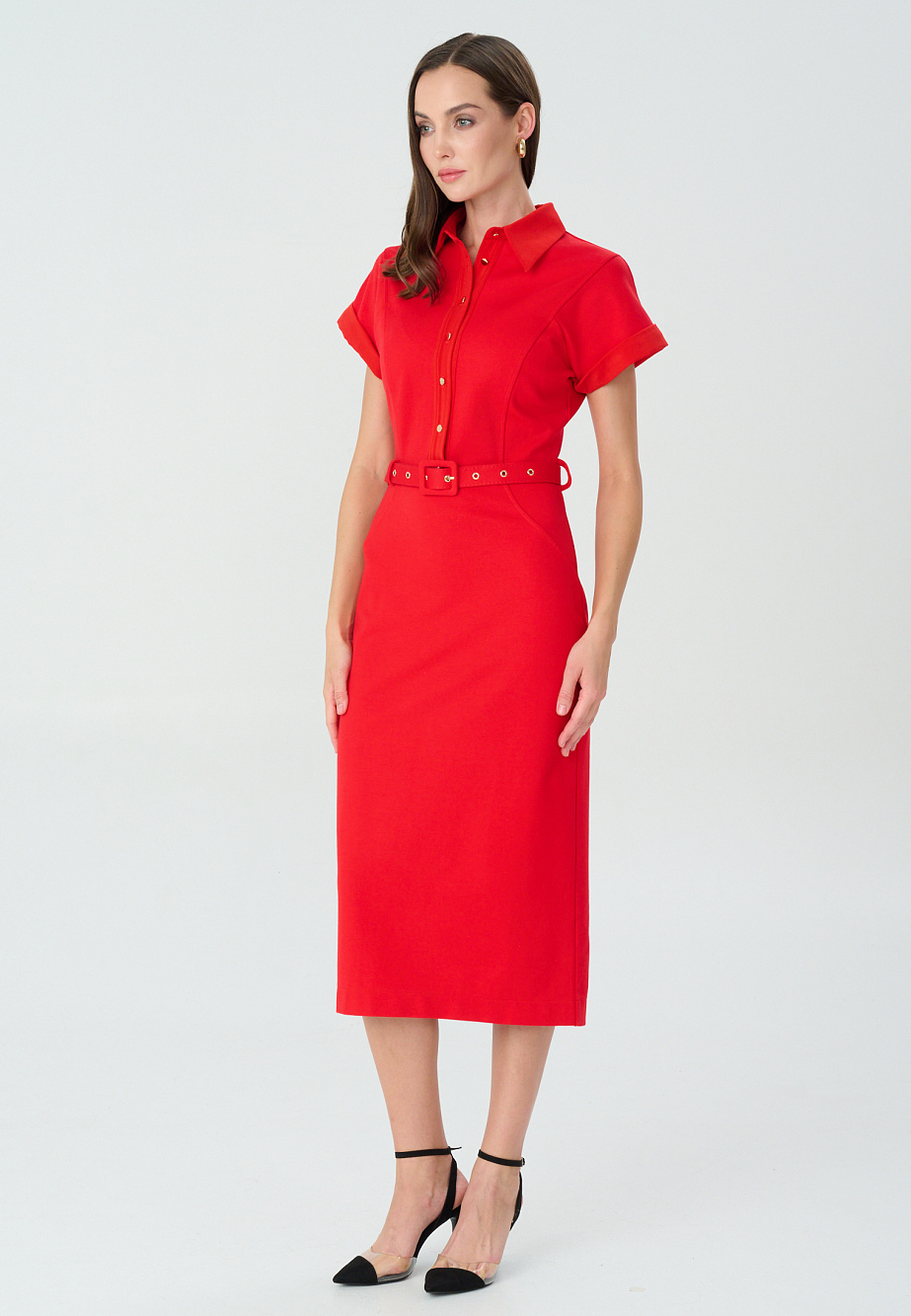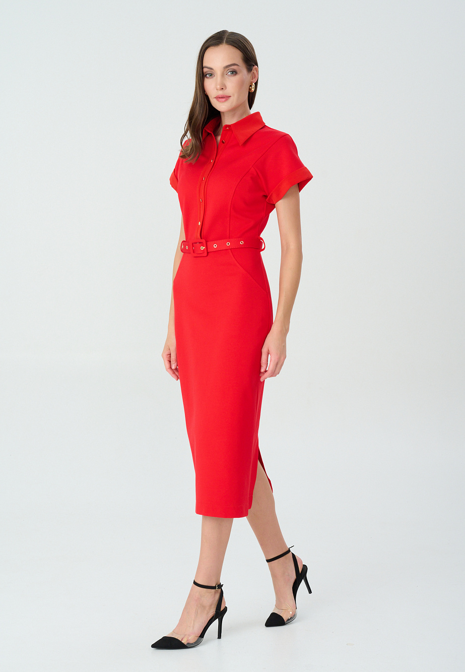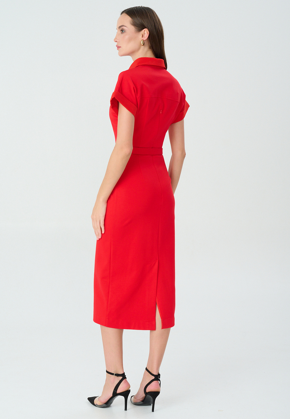 Платье-футляр из плотного трикотажа с высоким содержанием района комбинированное с отделкой деталей из сатина и фурнитурой под металл. Модель представлена в 2-ух цветах-в актуальном оттенке красного Aurora red, который заполнил модные подиумы и прекрасно смотрится в этом строгом силуэте, а также в синем базовом цвете. Сатиновые элементы - планка , воротник и манжеты смягчают строгий классический образ и создают дополнительный эффект разных фактур , что всегда выглядит интересно и благородно. Стоит обратить внимание на комфортный спущенный рукав, изящные рельефные линии и выверенные пропорции. Платье идеально подойдет для деловых встреч,конференций,походов на выставку и др.культурных программ.