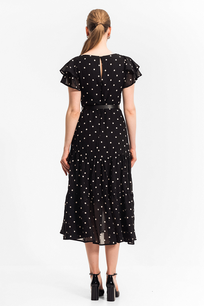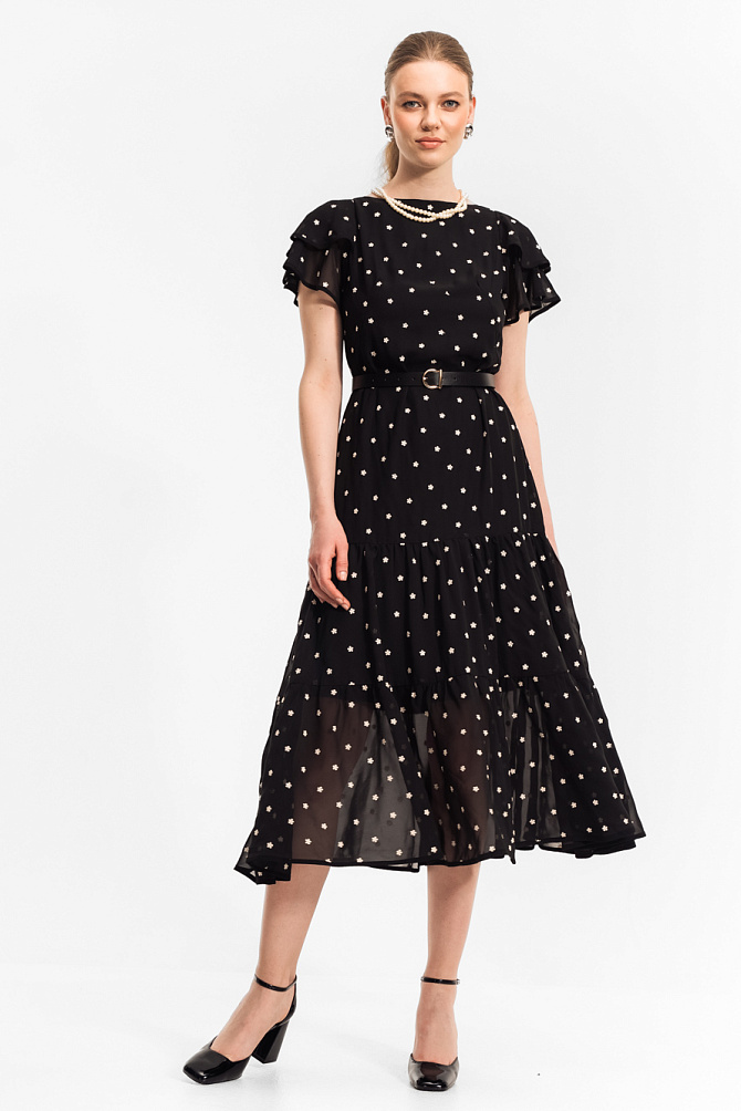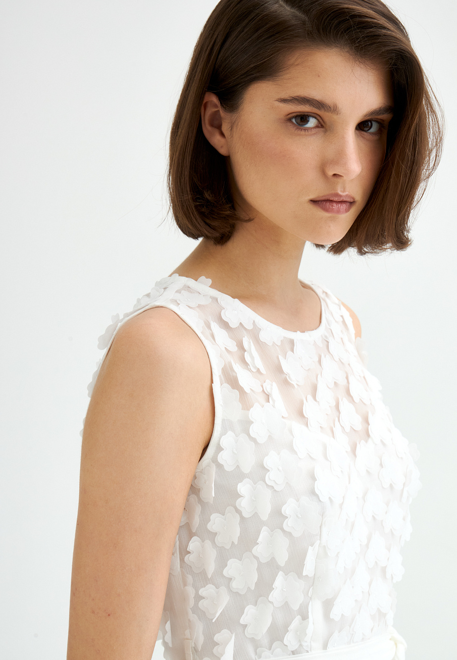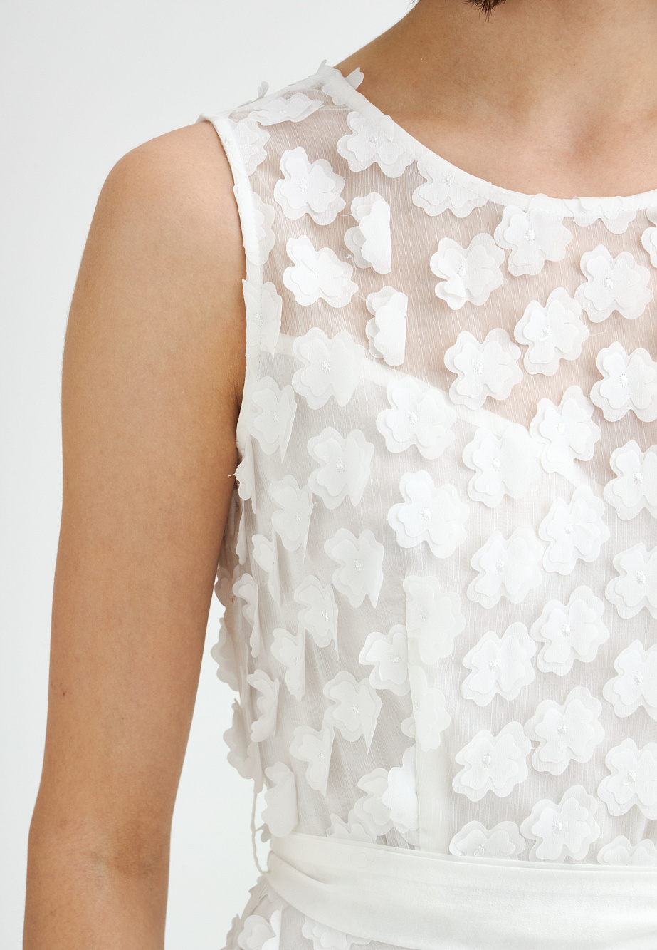 Платье в лаконичном силуэте мидакси из ткани с эффектом 3D сочетает высокое качество обработки, актуальные пропорции и продуманные детали. Круглый вырез горловины, юбка, скроенная по косой, и мягкий пояс из шифонового крепа придают модели элегантность и утонченность. Потайная молния сбоку и подкладка из вискозной ткани завершают образ, обеспечивая идеальную посадку.