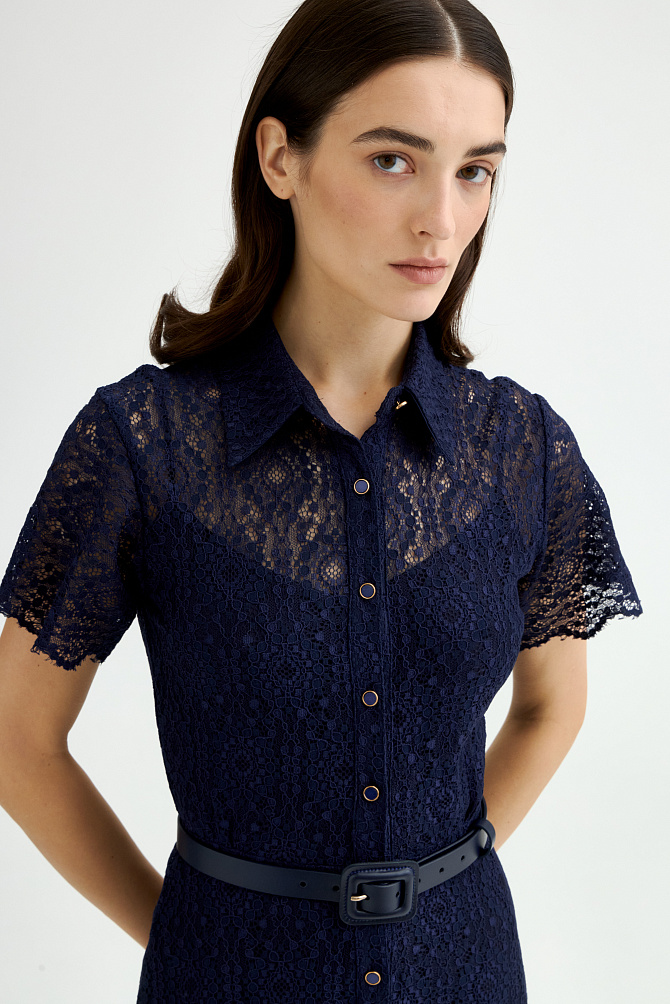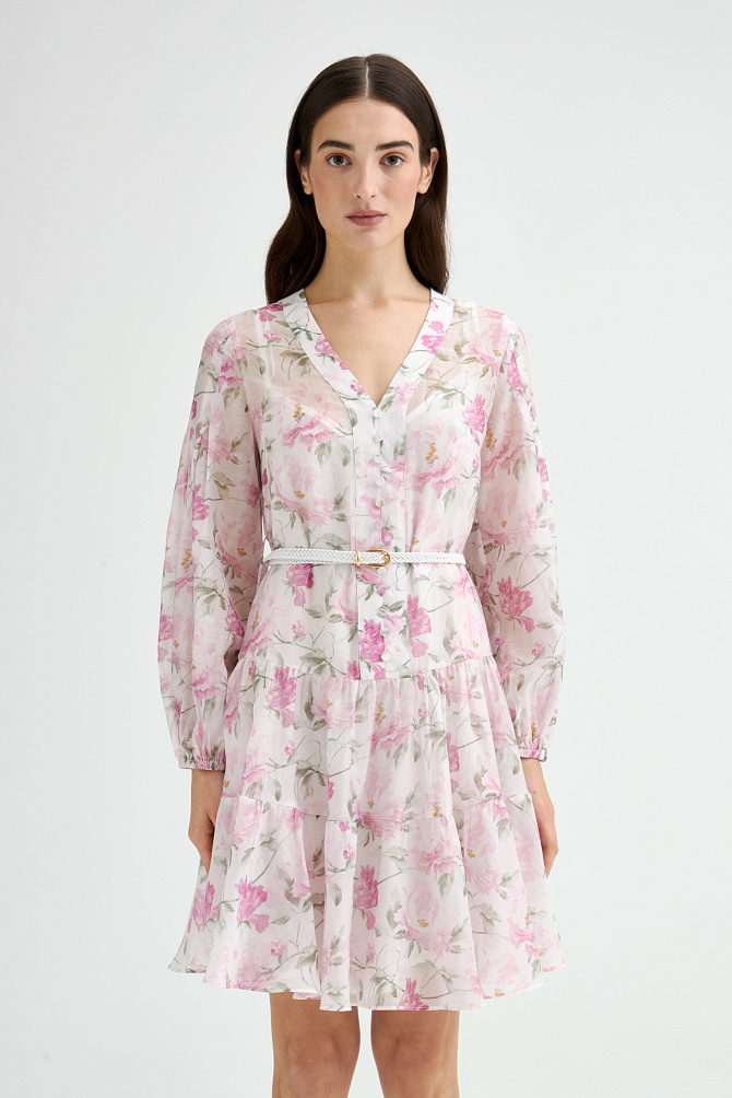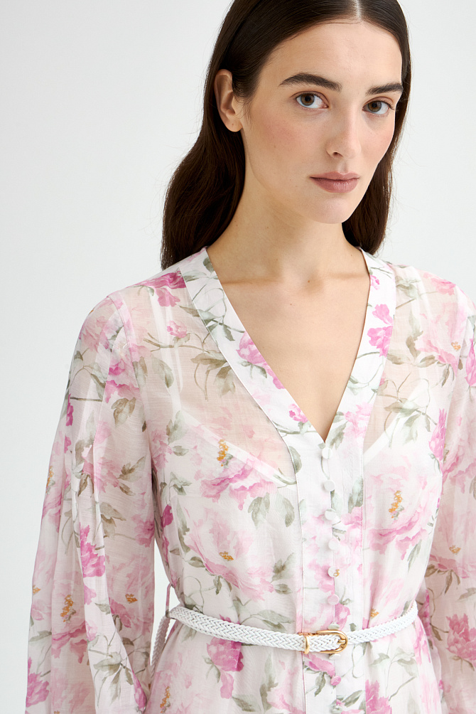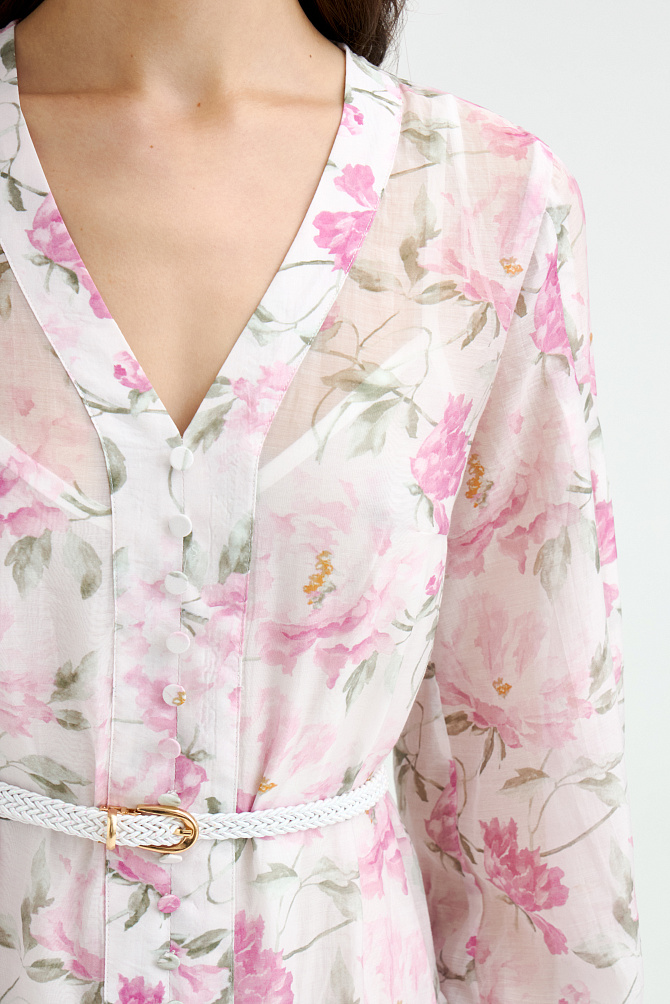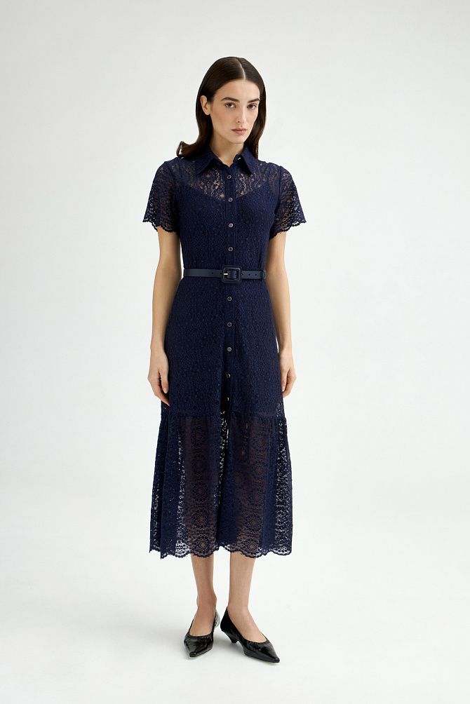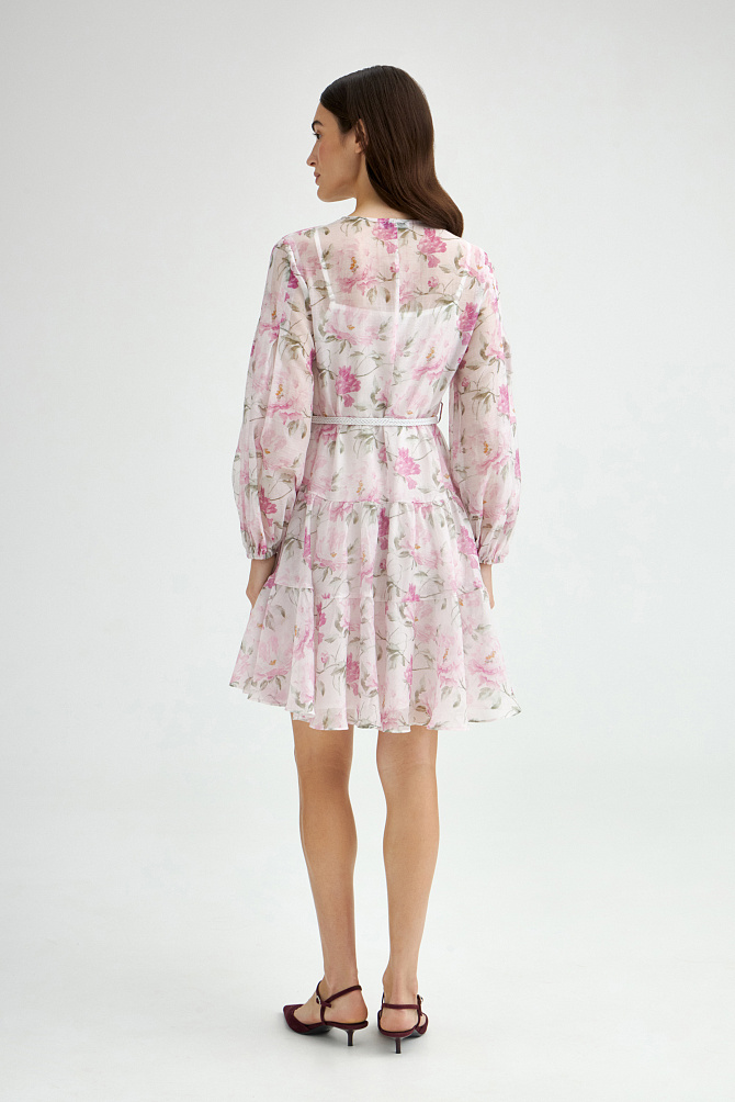 Шифоновое платье с вышивкой и отделкой тонким кружевом выполнено в ретро-стиле. Модные рукава с буфами, подрез со сборкой под грудью и V-образный вырез создают женственный классический образ, который будет актуален вне зависимости от трендов. Полуприлегающий силуэт и выразительная фактура ткани с деликатными объемами делают это платье универсальным выбором на каждый день.
