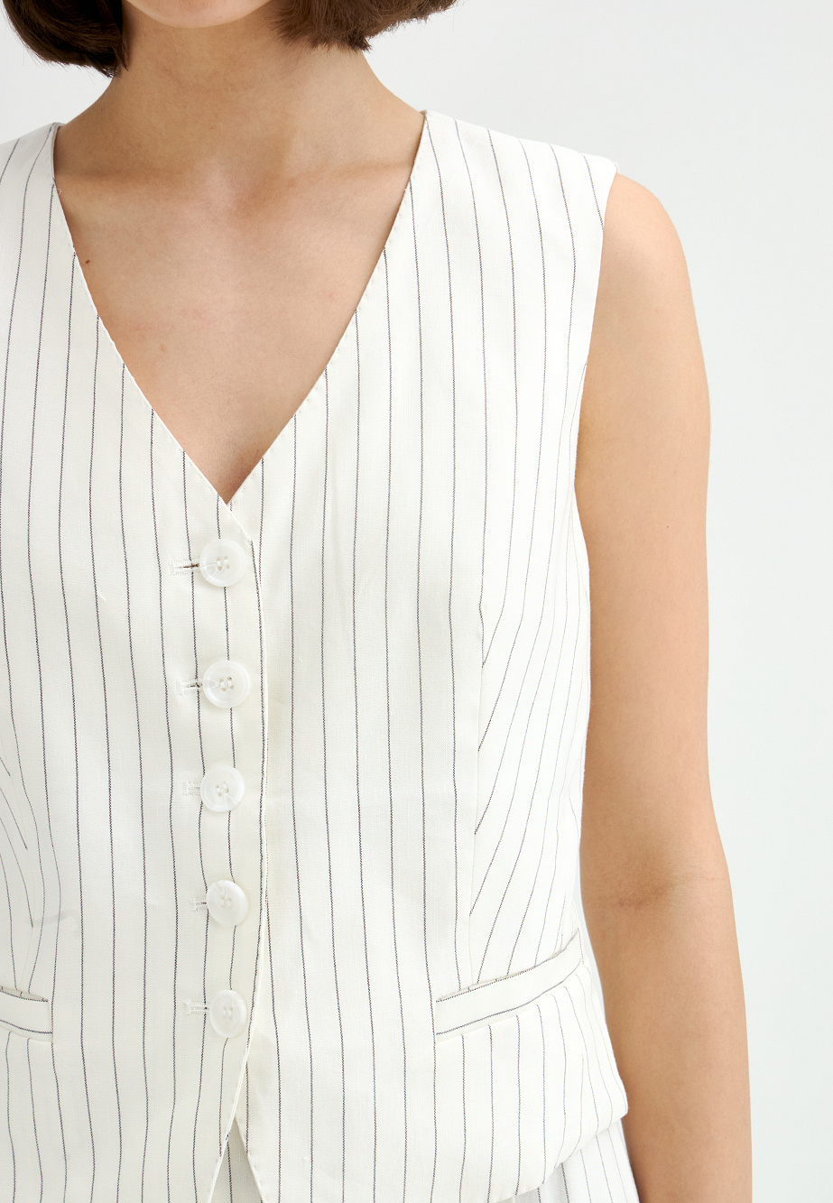 Основной материал: 55% лен, 42% вискоза, 3% спандекс. Подкладочная ткань: 80% вискоза, 20% полиэстер