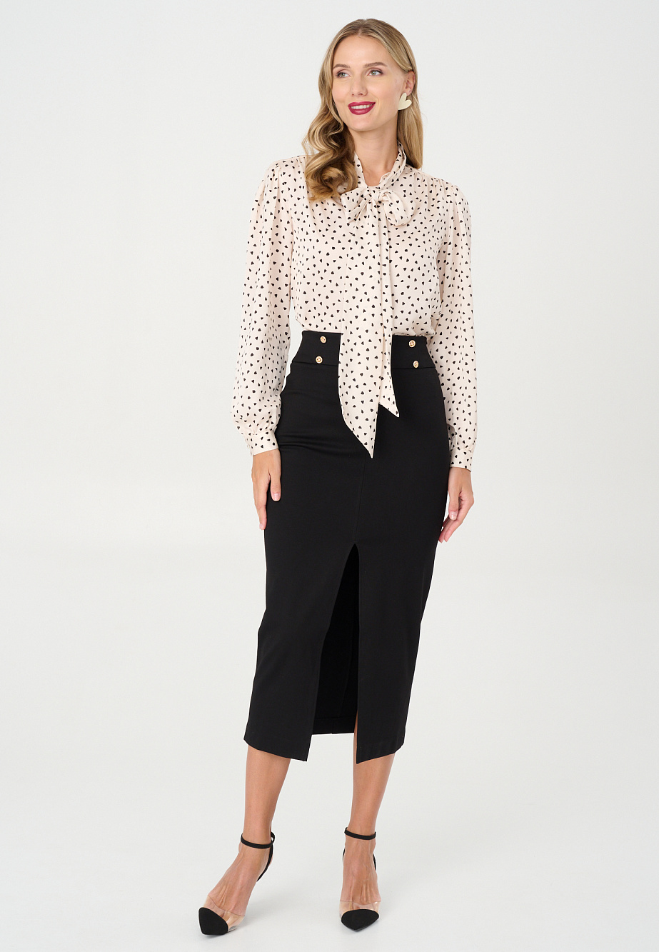 Юбка с высоким разрезом по переду,в актуальной длине мидакси, позволяет создать множество образов в современных пропорциях. Плотный трикотаж с содержанием вискозы идеально подчеркивает зауженный книзу силуэт. Комфортная резинка по спинке помогает обеспечить универсальность посадки,а кокетка и декоративные нарядные пуговицы привлекают внимание и добавляют элегантности образу в целом.