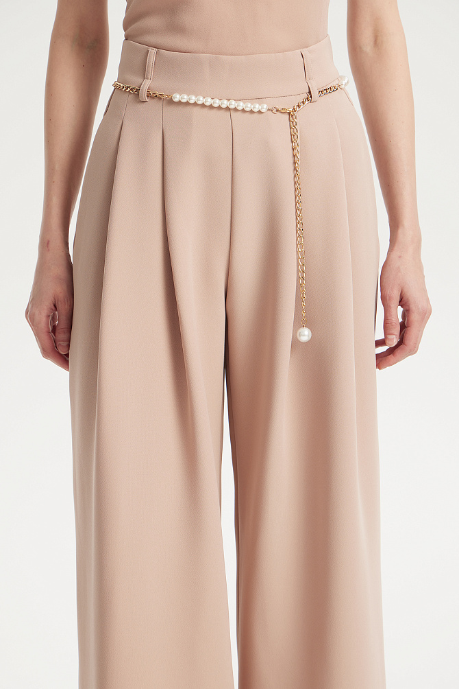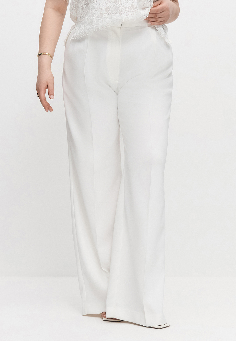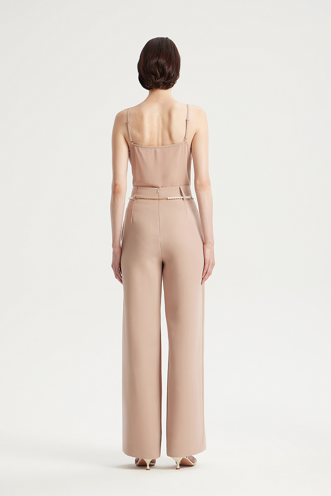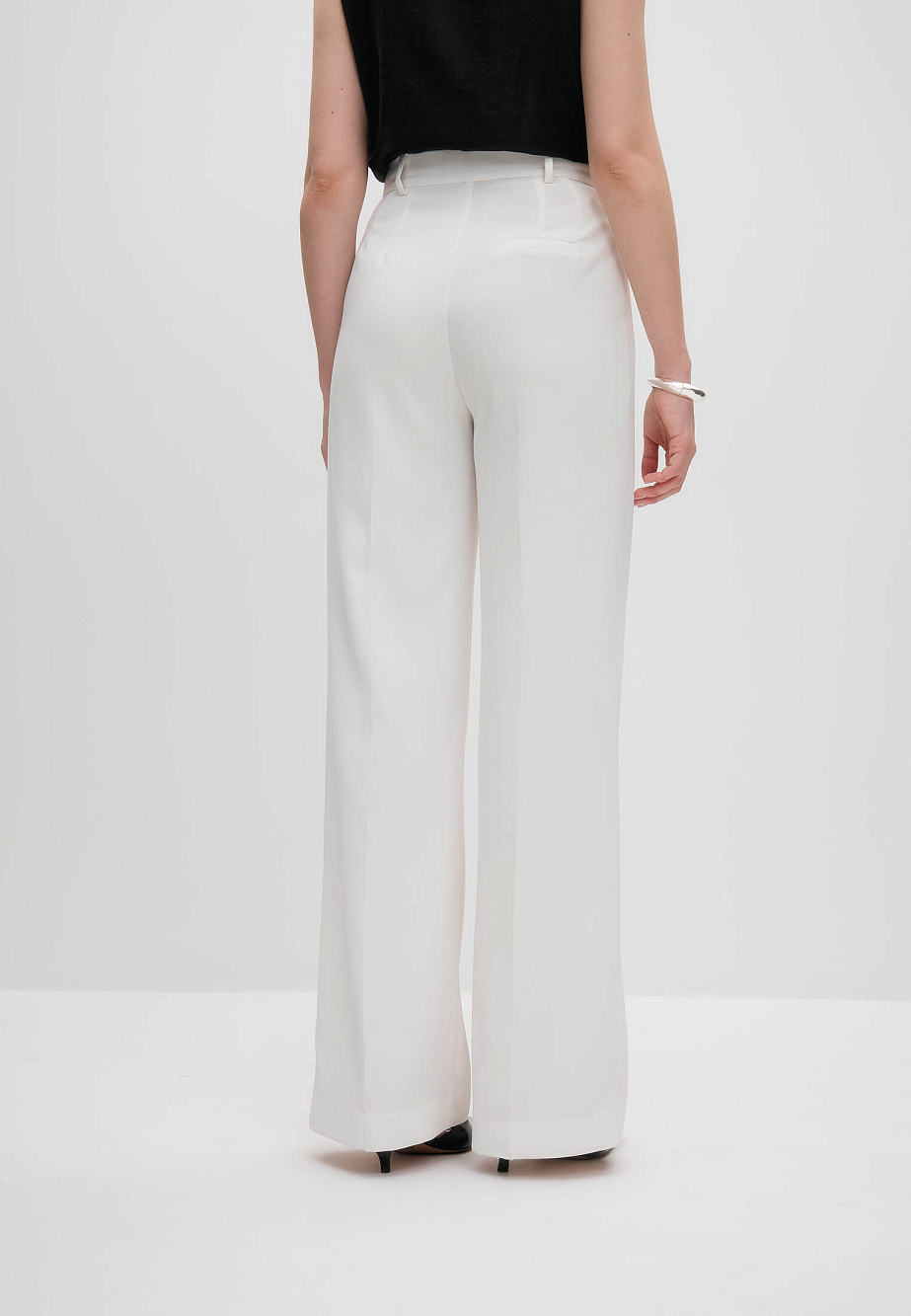 Прямые брюки на высокой посадке с защипами на талии и стрелками. Свободный силуэт и длина макси смотрится актуально и современно. В брюках предусмотрен полувискозный подклад шортами телесного цвета, чтобы избежать просвечивания нижнего белья. Брюки рекомендуется сочетать с жакетом из нашей коллекции.