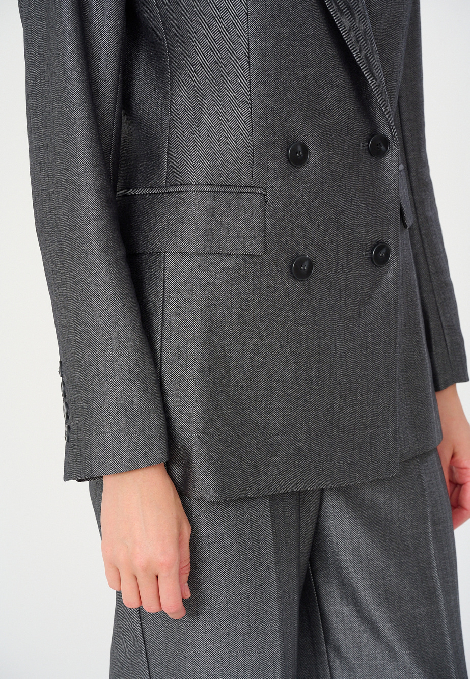 Основной материал: 14% район, 84% полиэстер, 2% спандекс. Подкладочная ткань: 53% хлопок, 47% полиэстер