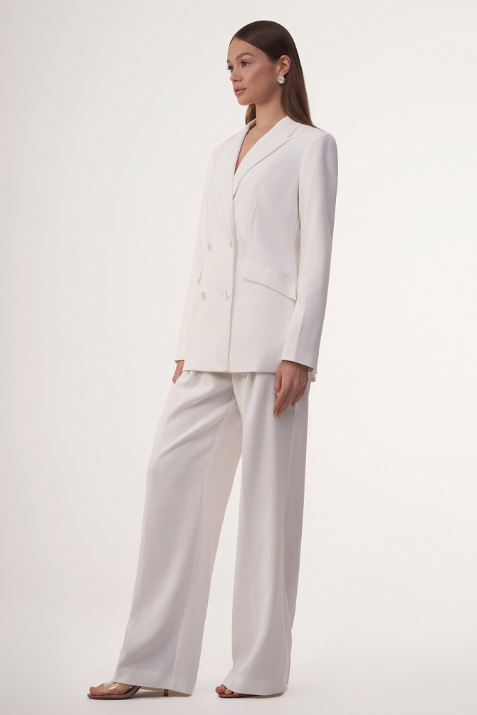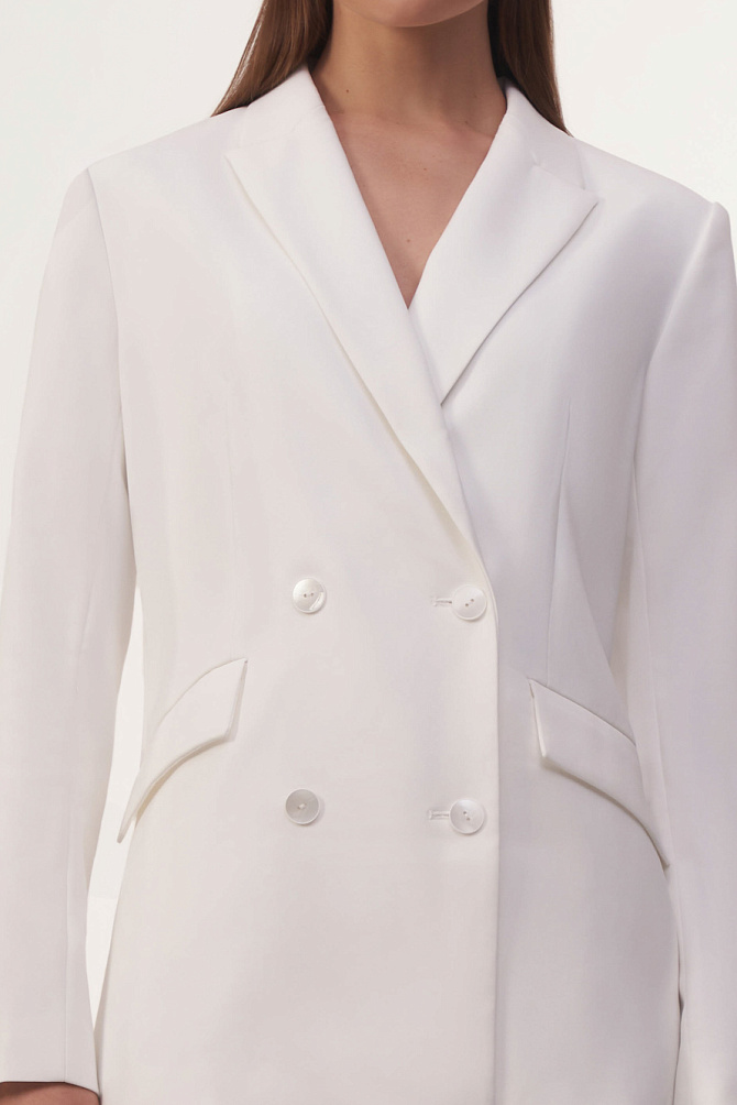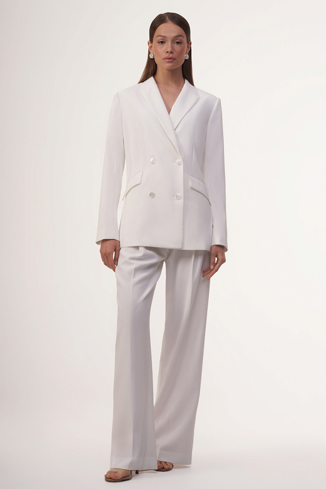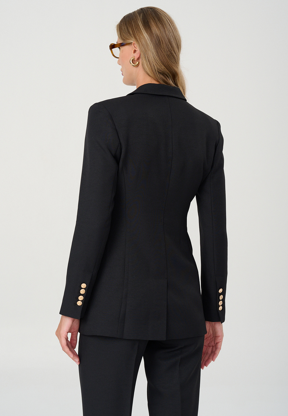 Жакет из костюмной ткани с матовым отливом, приталенного силуэта и с расширенной линией плеч, соответствует последним трендам 2024г., и создан, чтобы подчеркнуть женственность и привлекательность среди строгих офисных шаблонов. Выверенный крой, четкие графичные лацканы и клапаны карманов, подчеркнутые строчкой ручного стежка, безукоризненная конструкция и золотая фурнитура создают впечатление идеального жакета, способного продемонстрировать высокий статус и безупречный вкус.